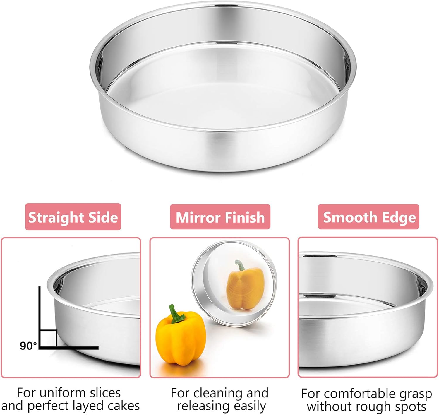 Experience the difference of one-piece seamless construction that prevents batter from leaking and guarantees perfectly round cakes every time. The mirror-polished finish not only looks professional but also makes cleaning effortless. These pans are 100% dishwasher safe, saving you time in the kitchen, though they can also be easily hand-washed with warm soapy water.