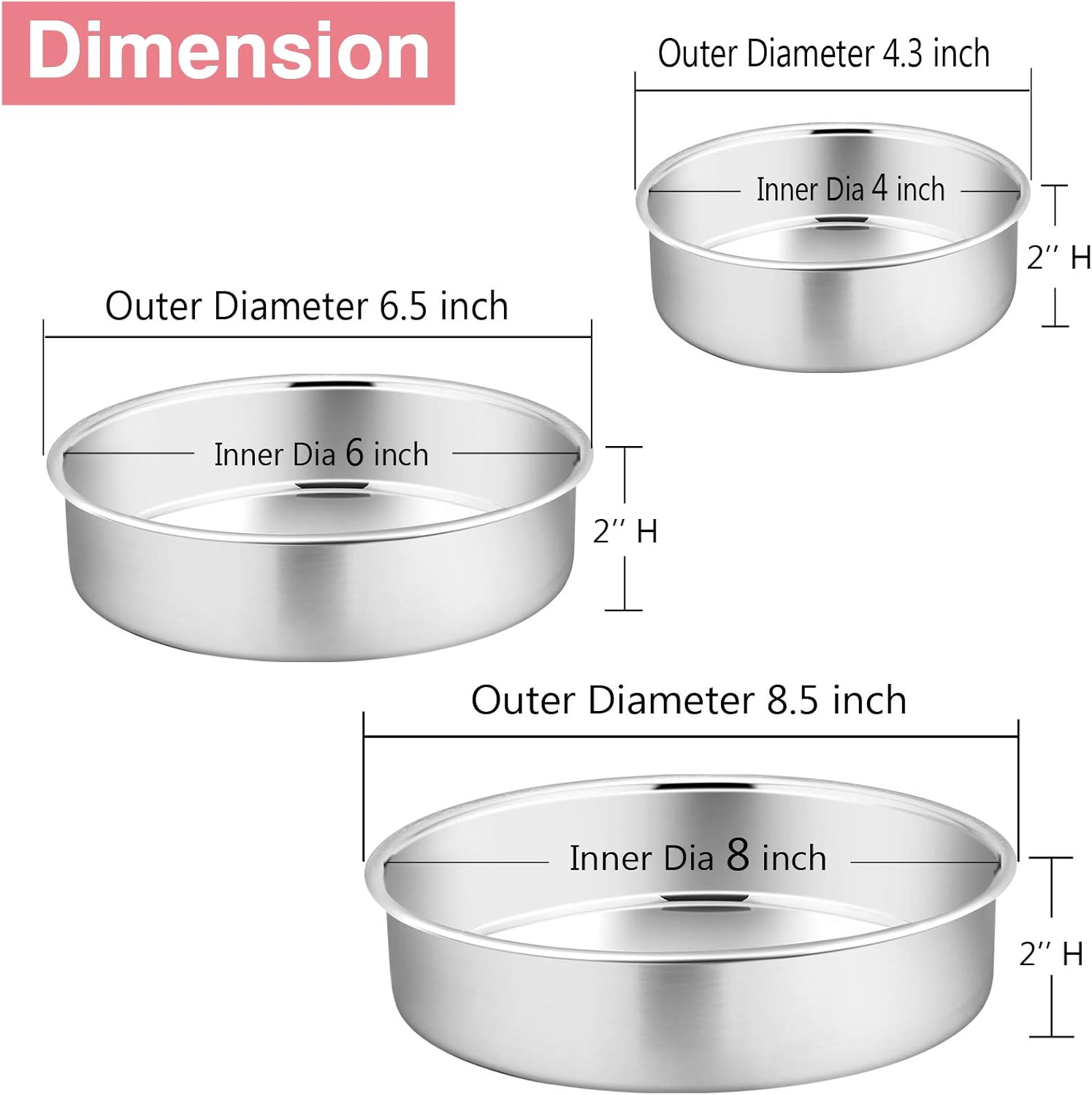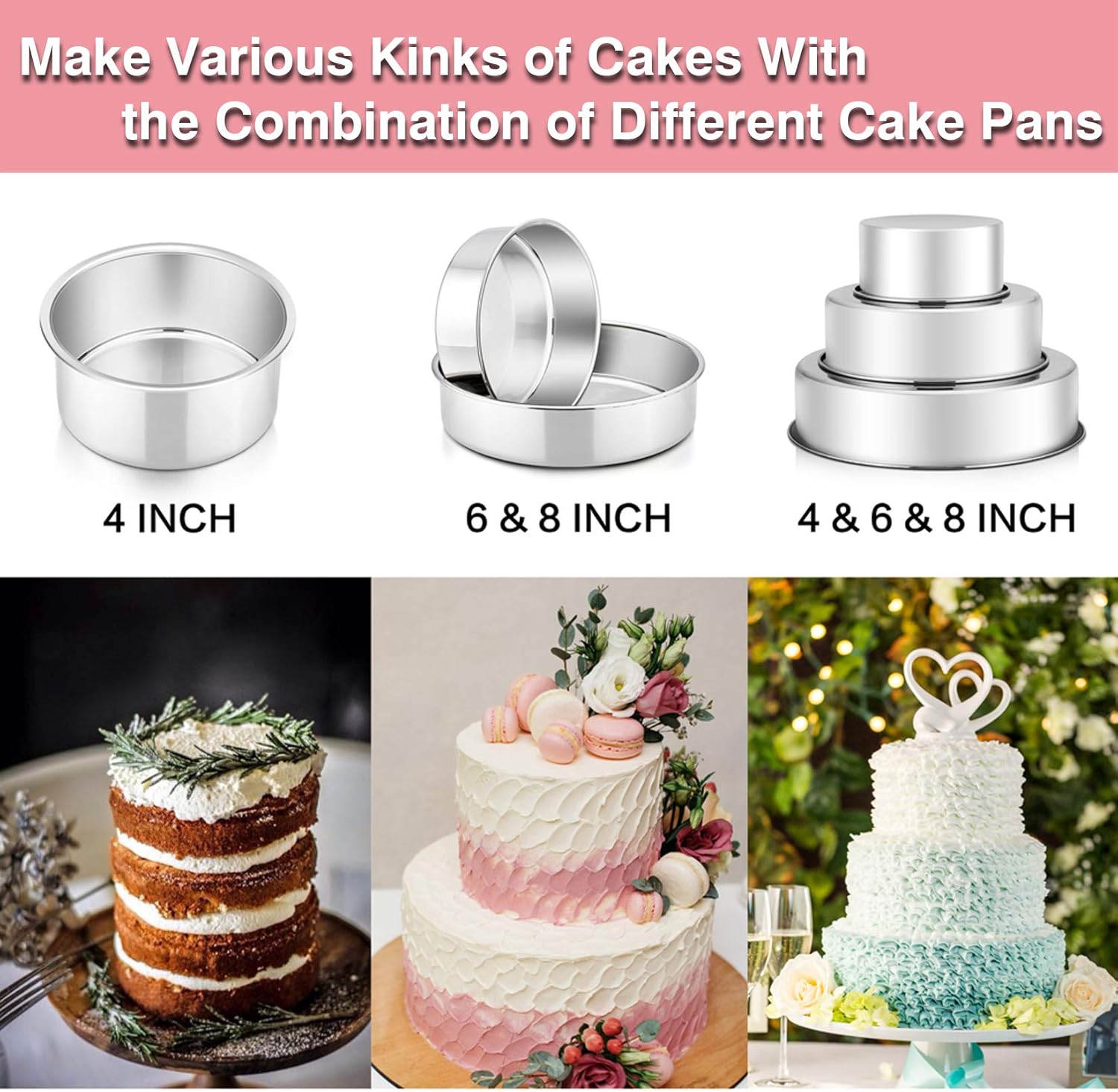 Elevate your baking game with the P&P CHEF 3-Piece Round Cake Pan Set, designed specifically for creating stunning tiered layer cakes for birthdays, weddings, and parties. This versatile set includes 4-inch, 6-inch, and 8-inch diameter pans, each featuring a 2-inch straight side to ensure uniform baking and easy stacking.