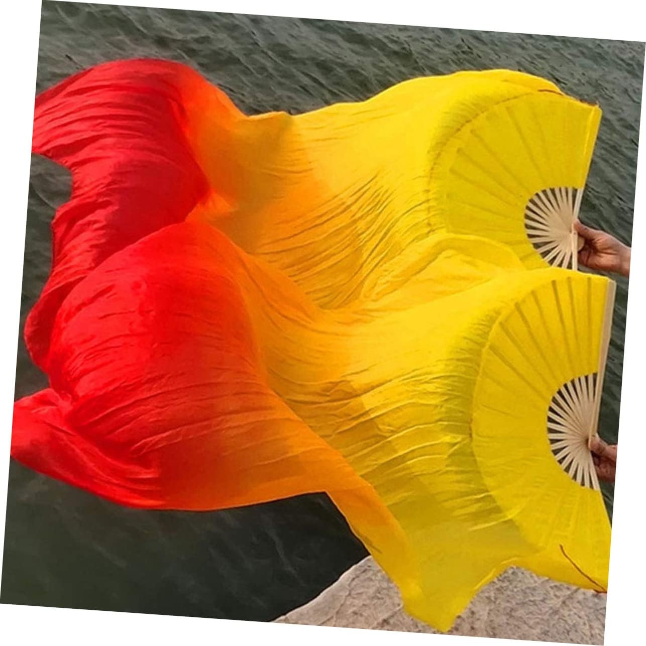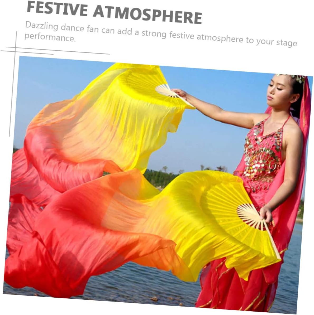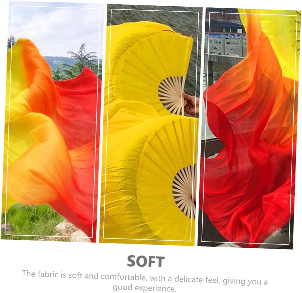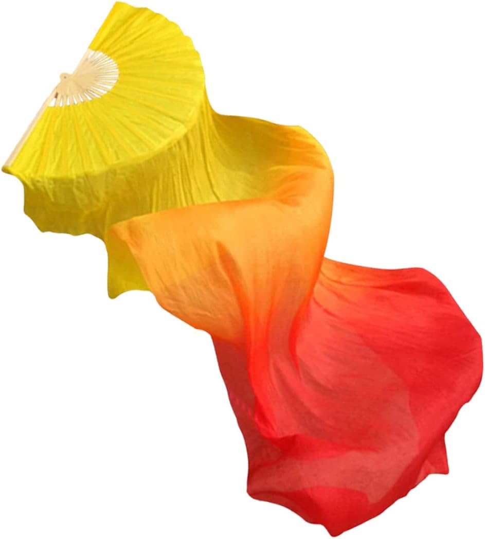 47-inch faux silk dance fan with stunning red-orange-yellow ombre gradient. Flexible folding design for easy use and storage. Perfect for square dance, stage performances, worship events, and special occasions. Suitable for adults and children.