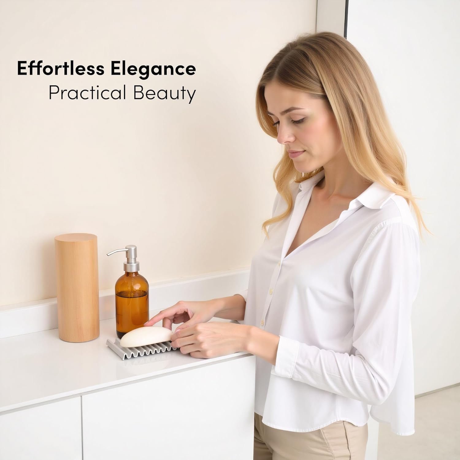 Stability meets safety. Each dish features four soft, non-slip silicone pads on the base. These pads grip smooth surfaces like sinks, bathtubs, and shower shelves tightly to prevent sliding or shifting, while simultaneously protecting your delicate fixtures from unsightly scratches or scuffs.
