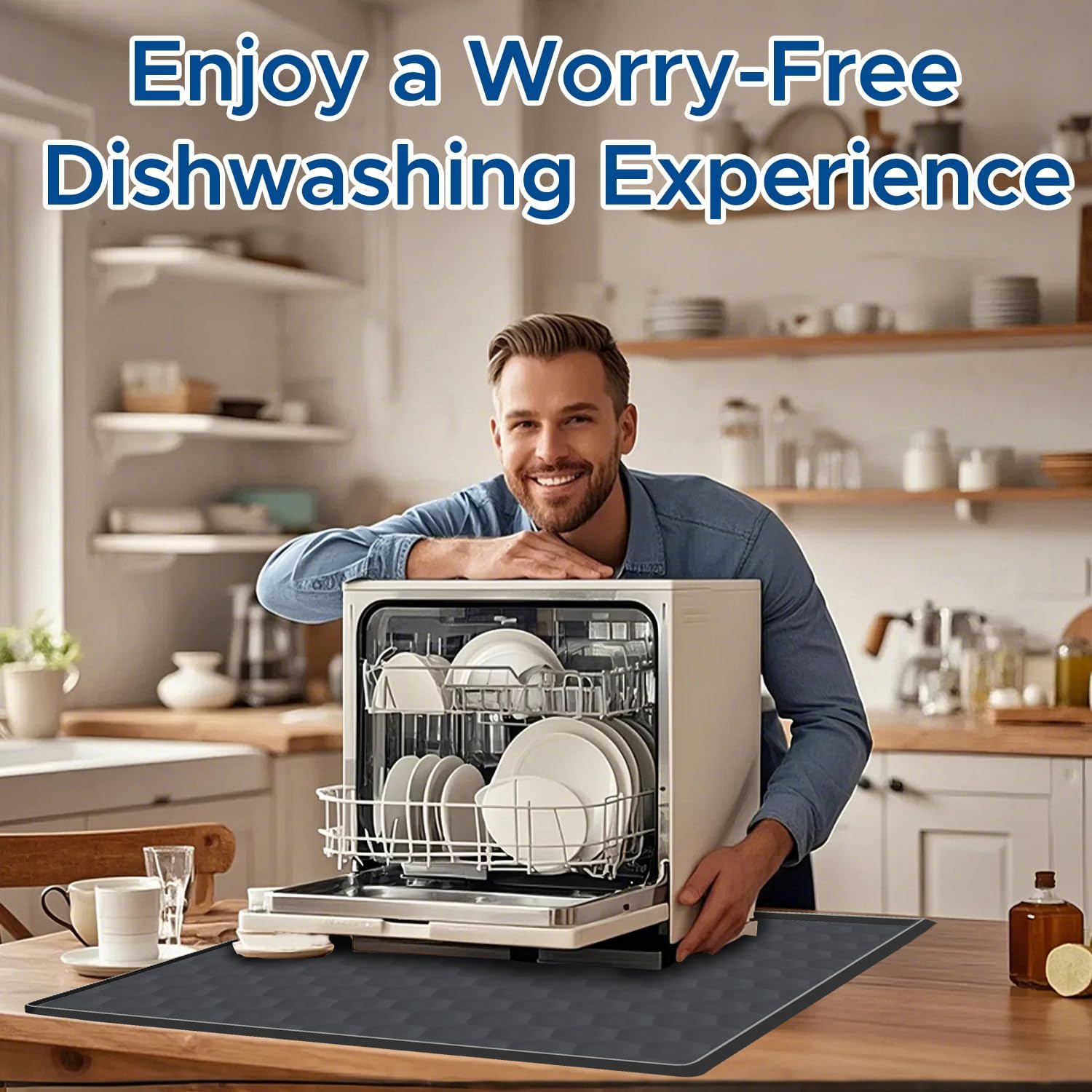 Protect your kitchen floors with our premium silicone dishwasher drain pan mat, thoughtfully designed to prevent water leaks and floor damage. Measuring 24 inches by 20 inches, this drip tray features raised edges all around that effectively contain water spills, keeping your kitchen neat and worry-free. Crafted from high-quality food-grade silicone, this mat is waterproof, heat-resistant, and scratch-resistant, ensuring long-lasting durability. The flexible yet sturdy material can be easily folded for convenient storage without losing its shape. Beyond dishwashers, this versatile mat works perfectly under coffee makers, air fryers, toasters, microwaves, mini fridges, and can even double as a pet feeding mat or plant tray. The soft silicone material also helps reduce operational noise from your dishwasher, creating a quieter kitchen environment. Easy to clean and maintain – simply wipe down or rinse with water. Perfect gift for housewarmings or anyone with a countertop dishwasher.