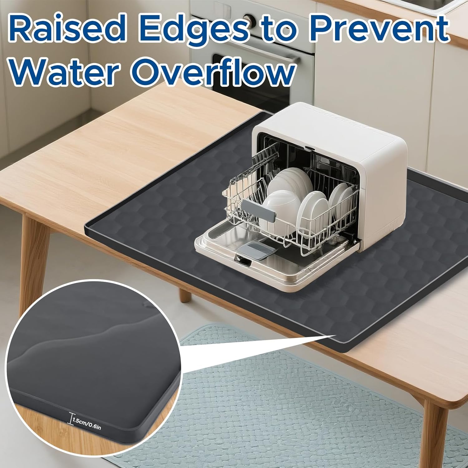 Premium Silicone Dishwasher Drain Pan Mat – 24″ x 20″ Anti-Leakage Drip Tray with Raised Edges for Countertop & Mini Dishwashers