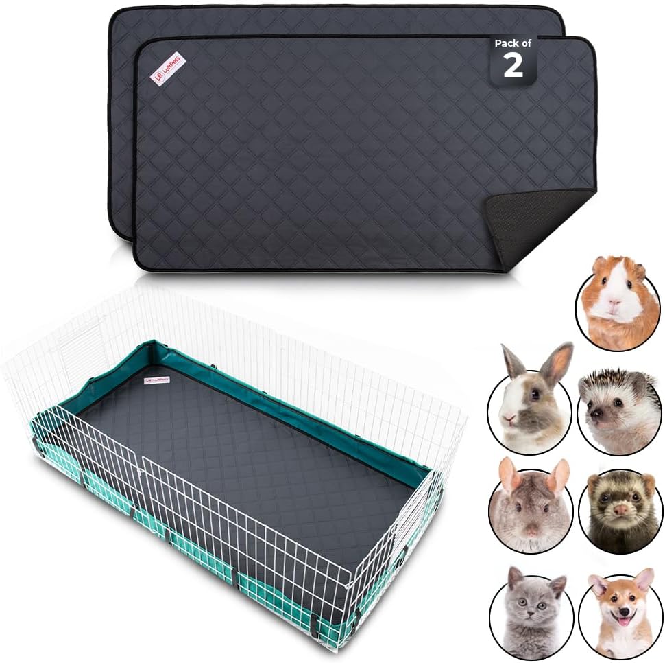 Premium Washable Guinea Pig & Rabbit Cage Liners – 2 Pack, Waterproof, Absorbent & Non-Slip Pee Pads for Small Animals (Fits Midwest 24″x47″)