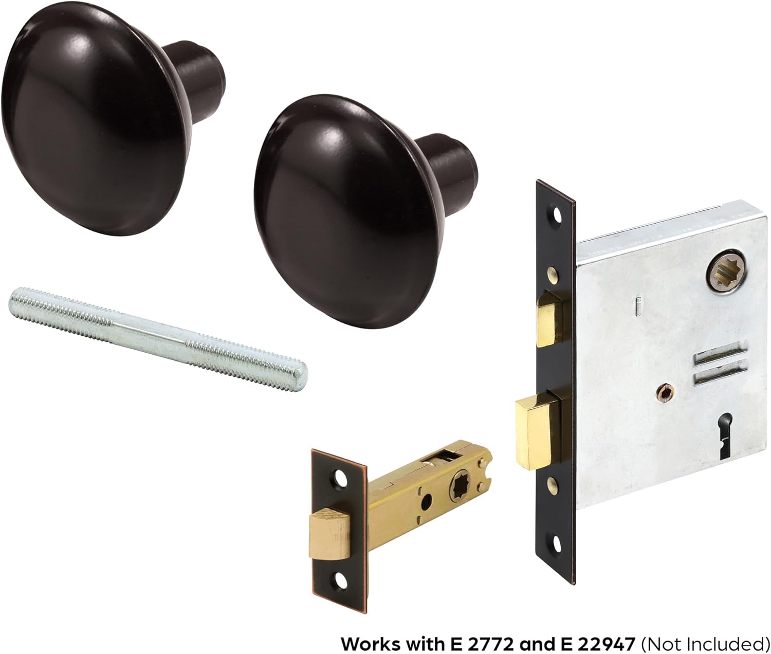 Add timeless elegance to your home with this vintage-style door knob spindle set from Prime-Line. Crafted with attention to detail, this classic bronze-finished hardware transforms ordinary doors into stunning vintage focal points. The set includes a durable 17/64 inch x 3-1/2 inch steel spindle with 3/8 inch -20 threads, designed to work seamlessly with square drive spindle systems found in antique and vintage door hardware. Perfect for restoration projects or adding old-world charm to modern homes, this adjustable knob set accommodates various door thicknesses. The knobs feature convenient set screws for secure attachment to the square spindle. Note: This set does not include the mortise lock body, door rosettes, trim and strike plates, or latch and fasteners – these must be purchased separately. For those seeking solid brass knobs, see Prime-Line part E 2297. Professional installation recommended for pre-bored doors requiring modification.