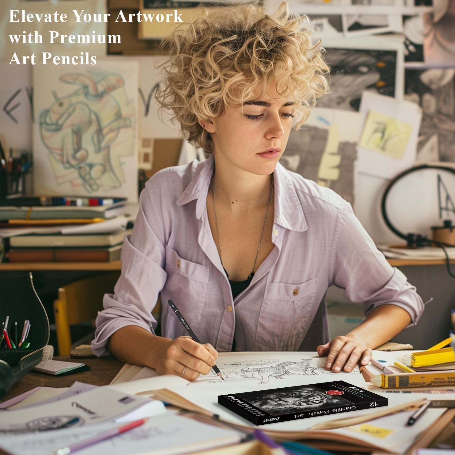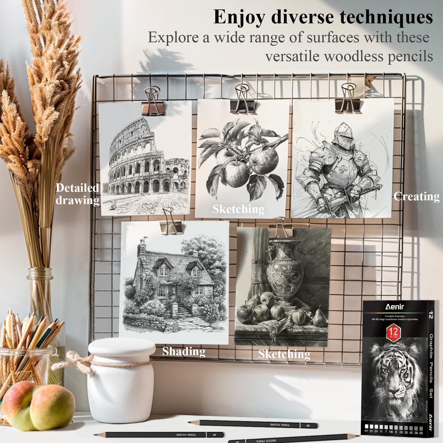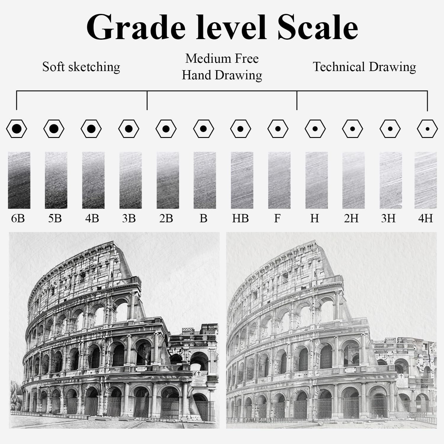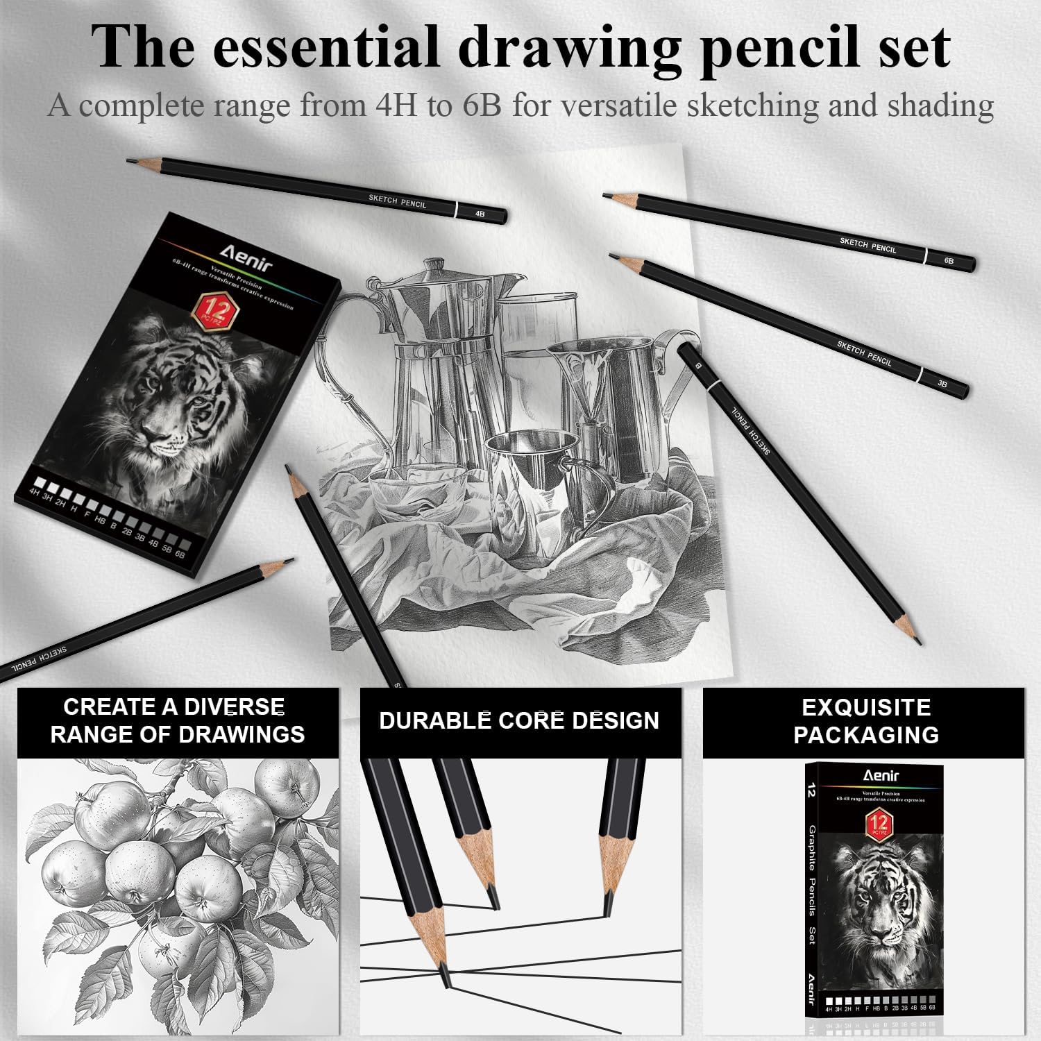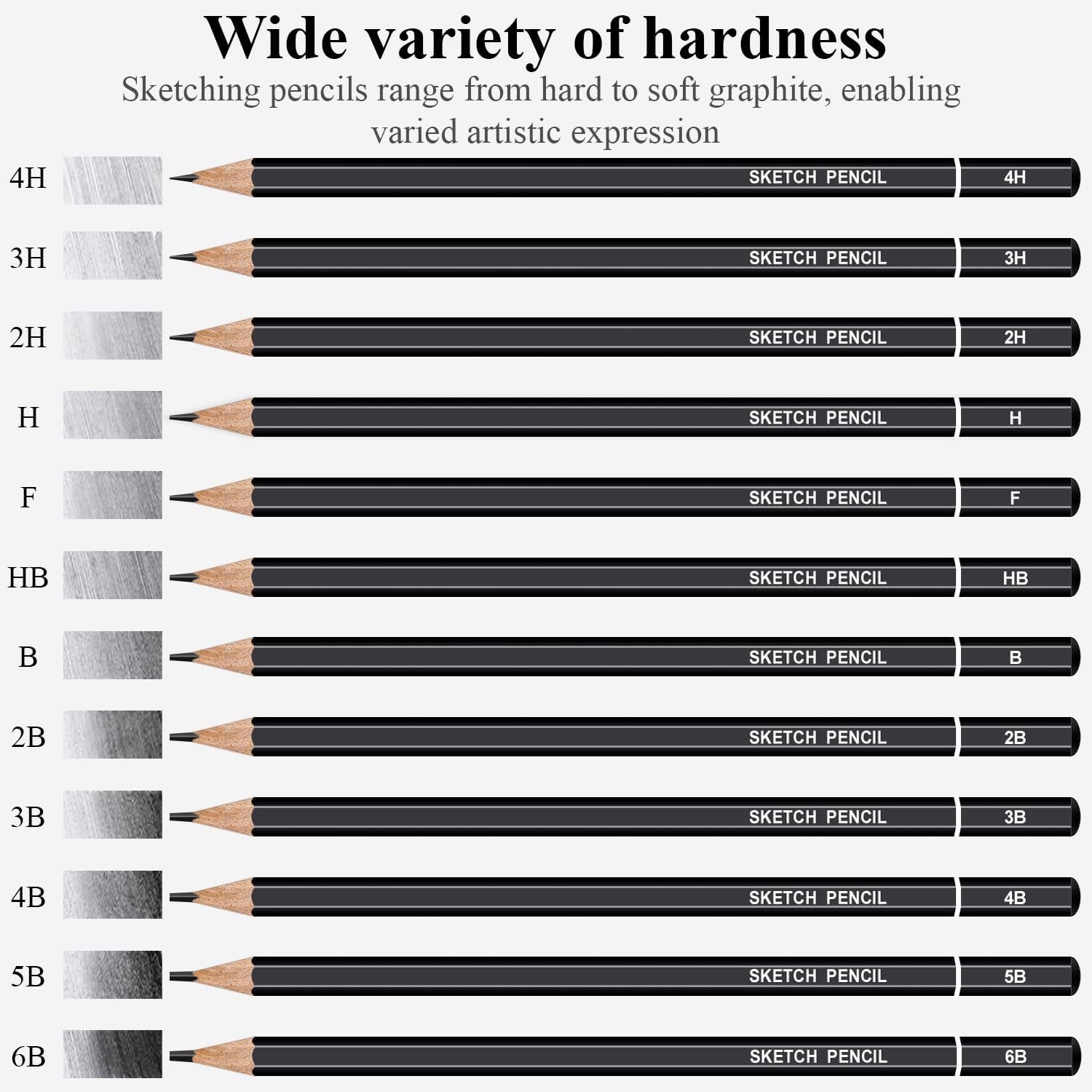 • COMPLETE RANGE: Includes 12 premium graphite pencils ranging from 6B (Soft/Black) to 4H (Hard), offering versatility for all shading and sketching techniques.