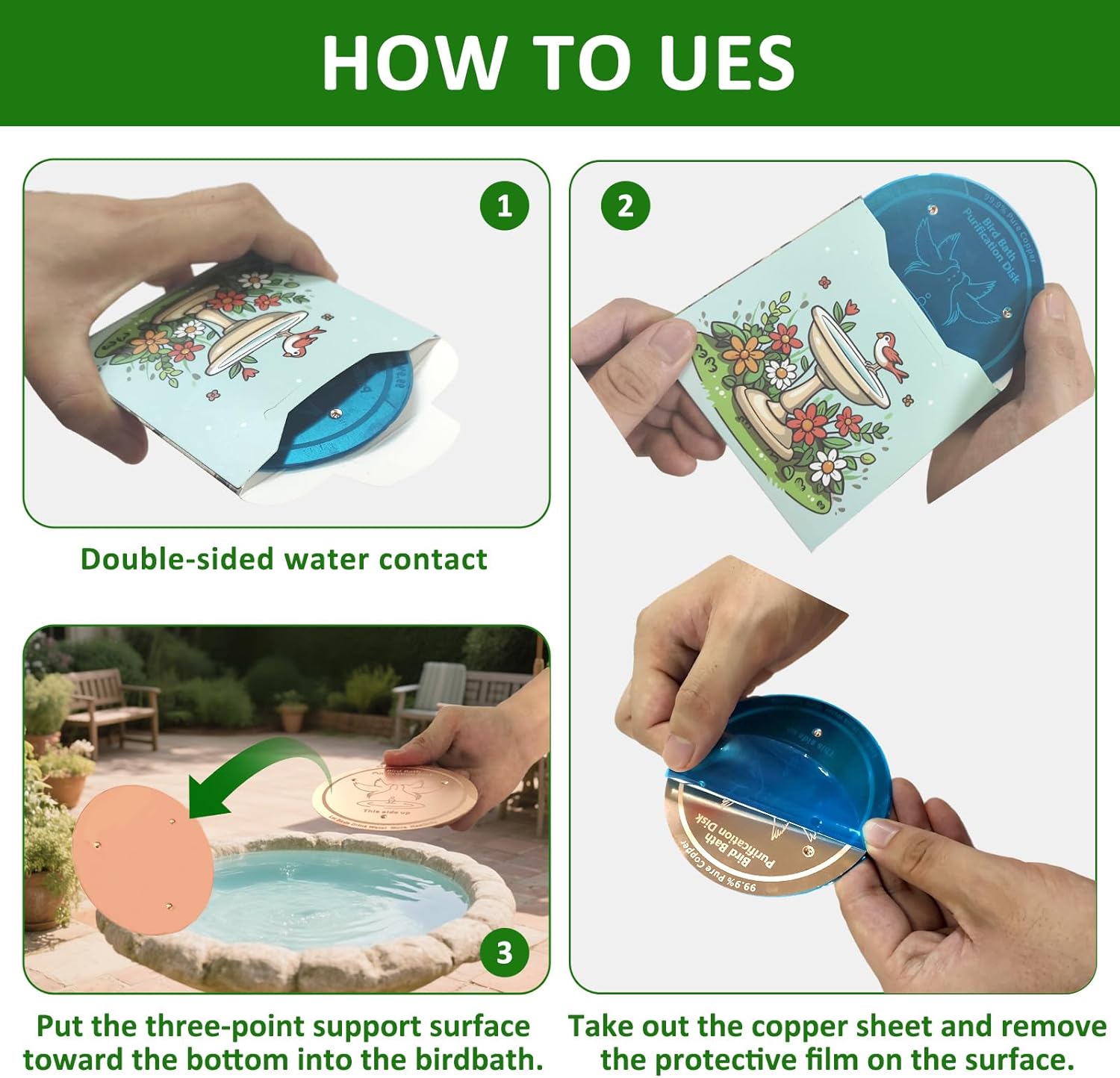 Revolutionize your backyard birding experience with the AWLGAK Pure Copper Bird Bath Disk. Meticulously crafted from 99.99% pure copper, this innovative disk utilizes the natural antimicrobial properties of copper ions to keep water fresh, clean, and safe for your feathered friends. By releasing trace ions into the water, it effectively reduces algae growth and sludge buildup, extending your cleaning interval from every few days to every 2-3 weeks.