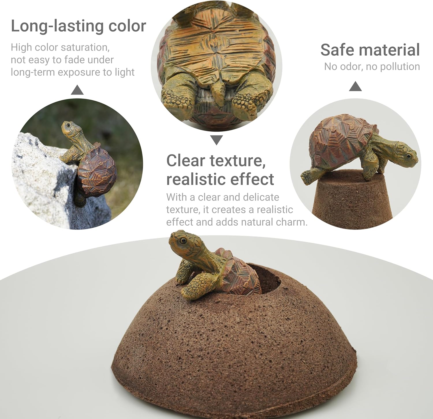 Versatile Botanical Accent: Whether perched on the rim of a bonsai pot, nestled among succulents, or peeking out from a terrarium, this resin turtle is perfectly proportioned to complement your greenery without overpowering it. It serves as an ideal accessory for both indoor houseplant setups and outdoor garden landscapes.