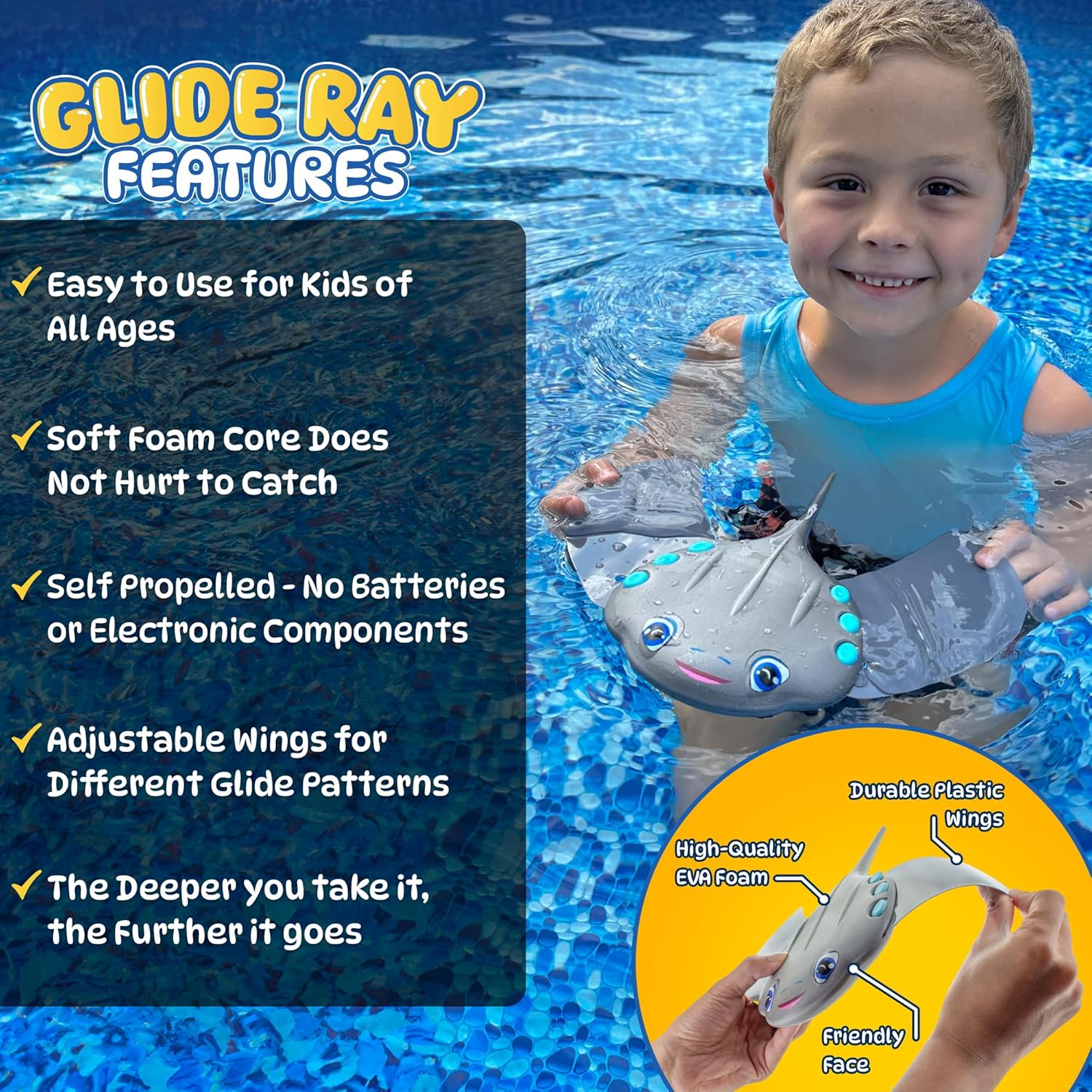 Constructed from durable, high-quality, non-toxic materials, the Glider Ray is built to withstand hours of active play while ensuring safety for children aged 4-8. Its smooth edges and robust design make it a reliable choice for parents and a thrilling companion for kids. Beyond the fun, this toy serves a greater purpose by encouraging children to put down screens and engage in active outdoor play, helping to enhance their swimming skills and confidence in the water.