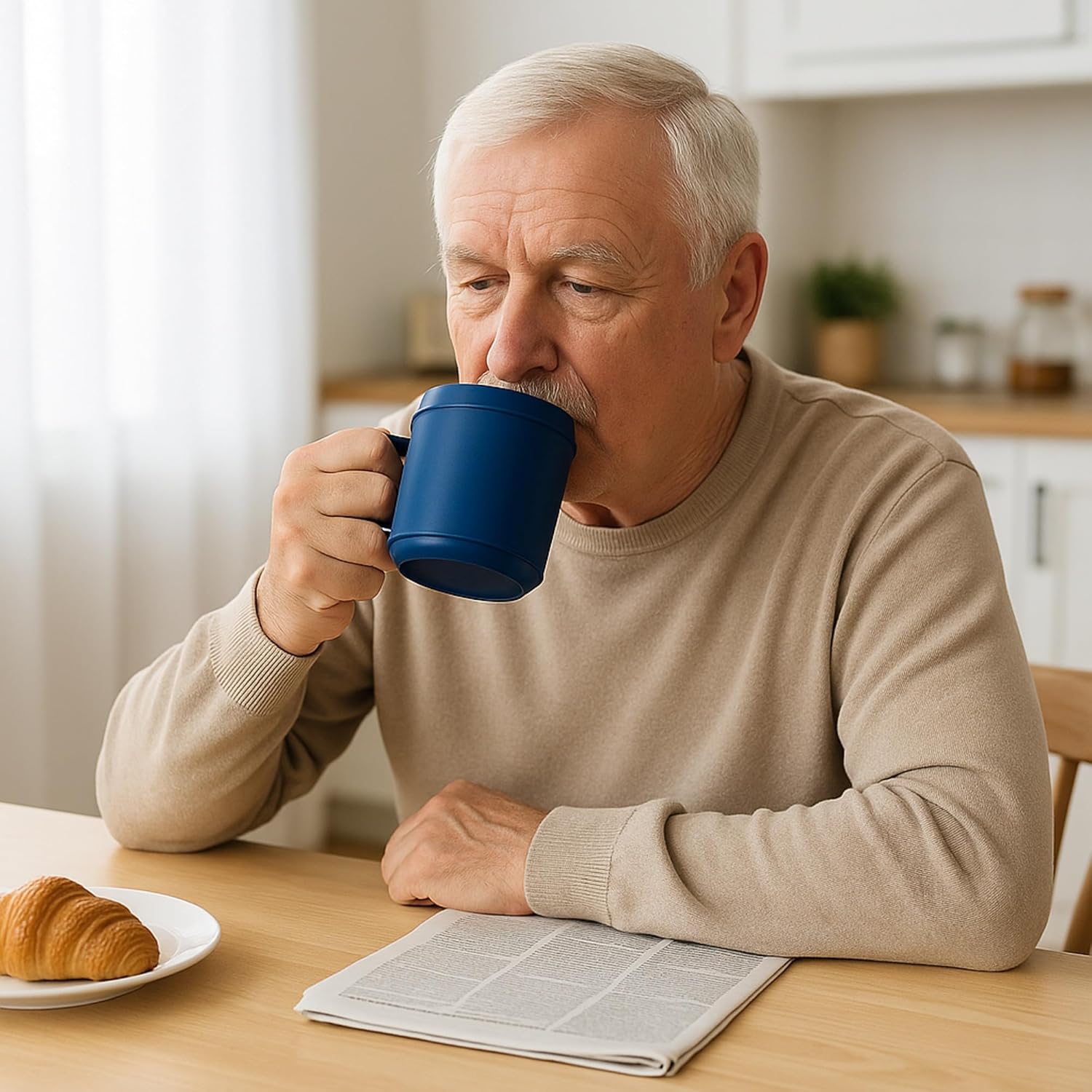Crafted from durable, lightweight polypropylene, this double-walled mug is built to withstand accidental drops while keeping your favorite beverages—coffee, tea, or water—at the perfect temperature for longer. Its compact 8 oz capacity is ideal for manageable portion control, and the vibrant blue color adds a cheerful touch to the daily routine. Whether used at home or in a professional rehabilitation setting, this mug offers a practical, dignified solution for safe and comfortable drinking. It is completely dishwasher safe for hassle-free sanitization.
