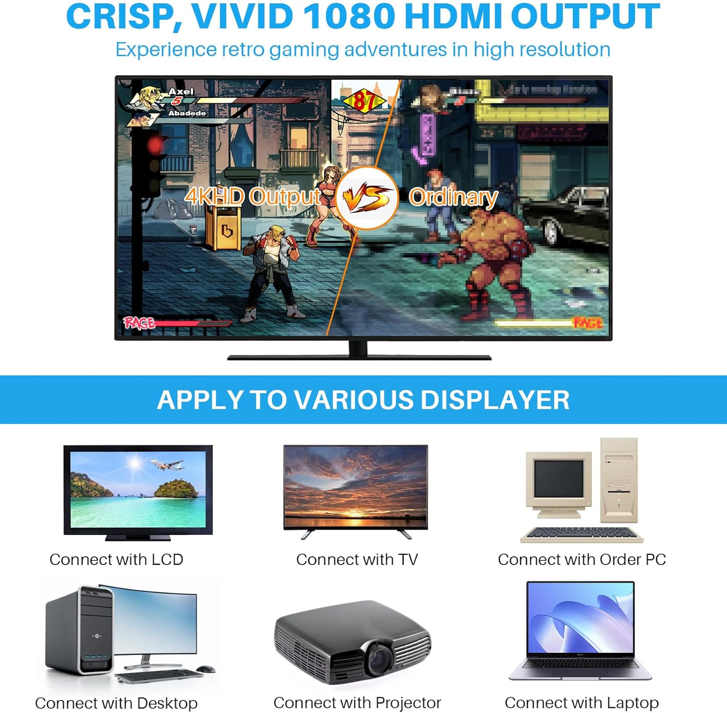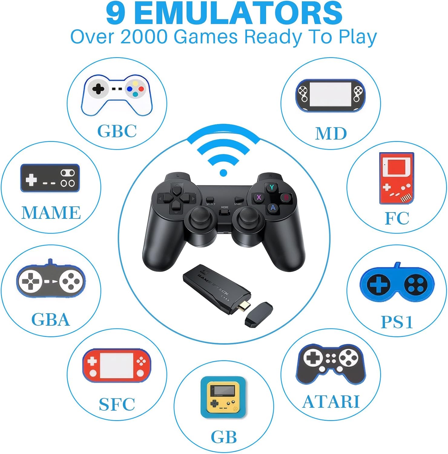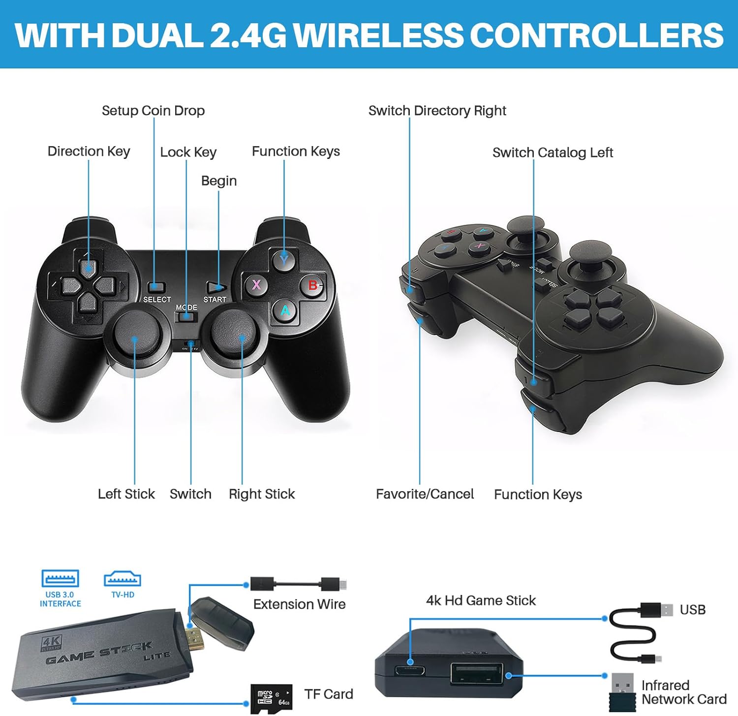 Say goodbye to complicated setups and tangled wires. This console is designed for instant gratification. Simply connect the HDMI stick to your TV (1080p/4K compatible), power it up, and start playing. The package includes two 2.4GHz wireless controllers, allowing for a stable connection up to 32.8 feet away. This dual-controller setup makes it perfect for head-to-head competition or cooperative play, bringing families and friends together for a night of multiplayer action.
