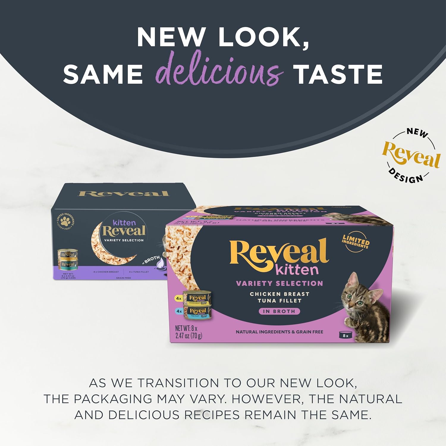 Whether served as a complete meal or a tasty topper over dry kibble, Reveal offers endless mealtime possibilities. The variety pack provides a delectable mix of flavors and textures that even the fussiest eaters will adore. As a Certified B Corporation, we are committed to making a positive impact on the planet and its pets, providing you with a cat food choice you can truly feel confident about.