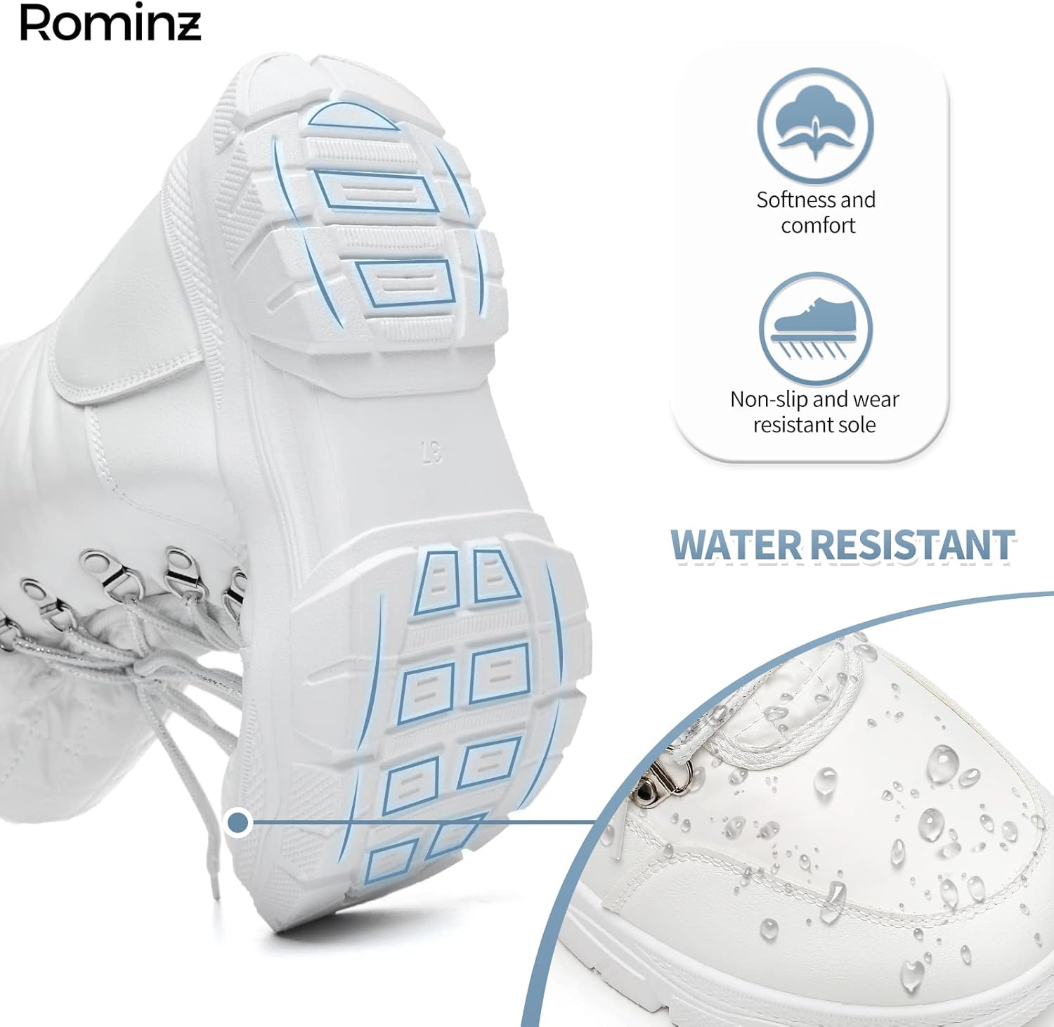 Step into winter with confidence and style in the Rominz Women’s Winter Snow Boots. Designed to be your ultimate defense against the cold, these boots feature a sumptuous faux fur lining that cocoons your feet in luxurious warmth, making them your go-to for icy commutes, snowy walks, or cozy evenings out. The mid-calf silhouette offers stylish protection against slush and snow, while a convenient side zipper ensures an effortless, snug fit every time. Conquer treacherous conditions with the advanced anti-slip outsole, providing superior traction on wet, icy, and snowy surfaces. From navigating city streets to enjoying a winter wonderland, experience the perfect blend of fashion, comfort, and durability. These booties are not just footwear; they’re your winter staple for making memories without the cold feet. Choose Rominz and embrace the season in warmth and style.