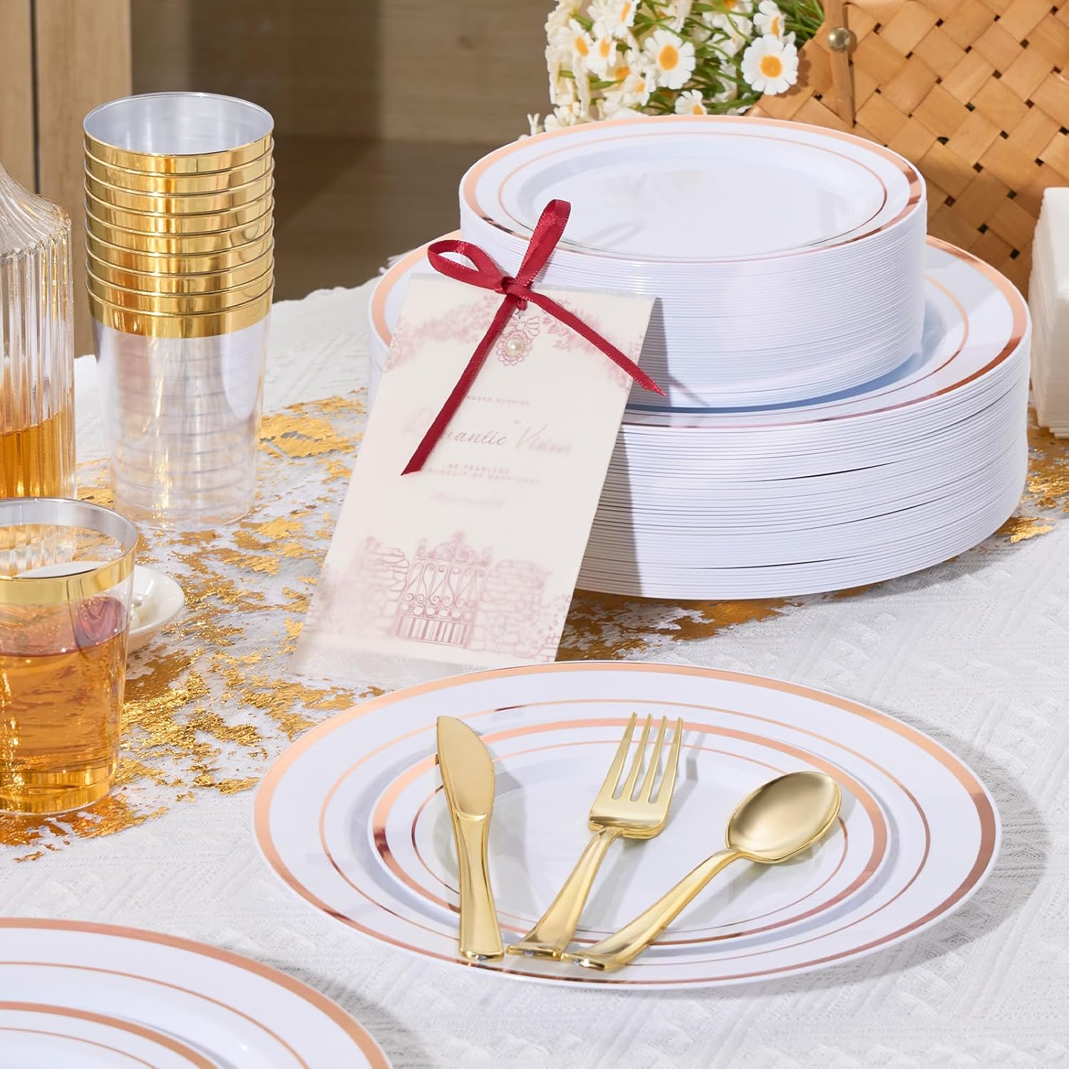 - LUXURIOUS ROSE GOLD DESIGN: Elegant metallic finish adds a sophisticated touch to weddings, holidays, birthdays, and catering events.