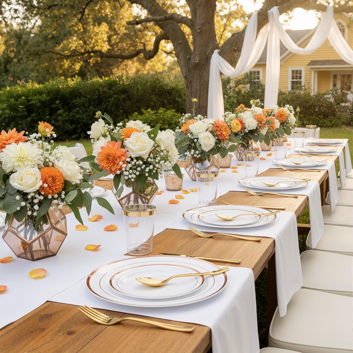 Unmatched Convenience: Skip the dishwashing and enjoy your party. Unlike fragile glass or heavy ceramic, this lightweight set is shatterproof and portable, making it an excellent choice for outdoor BBQs, picnics, camping trips, and buffets where breakable items are a hazard.