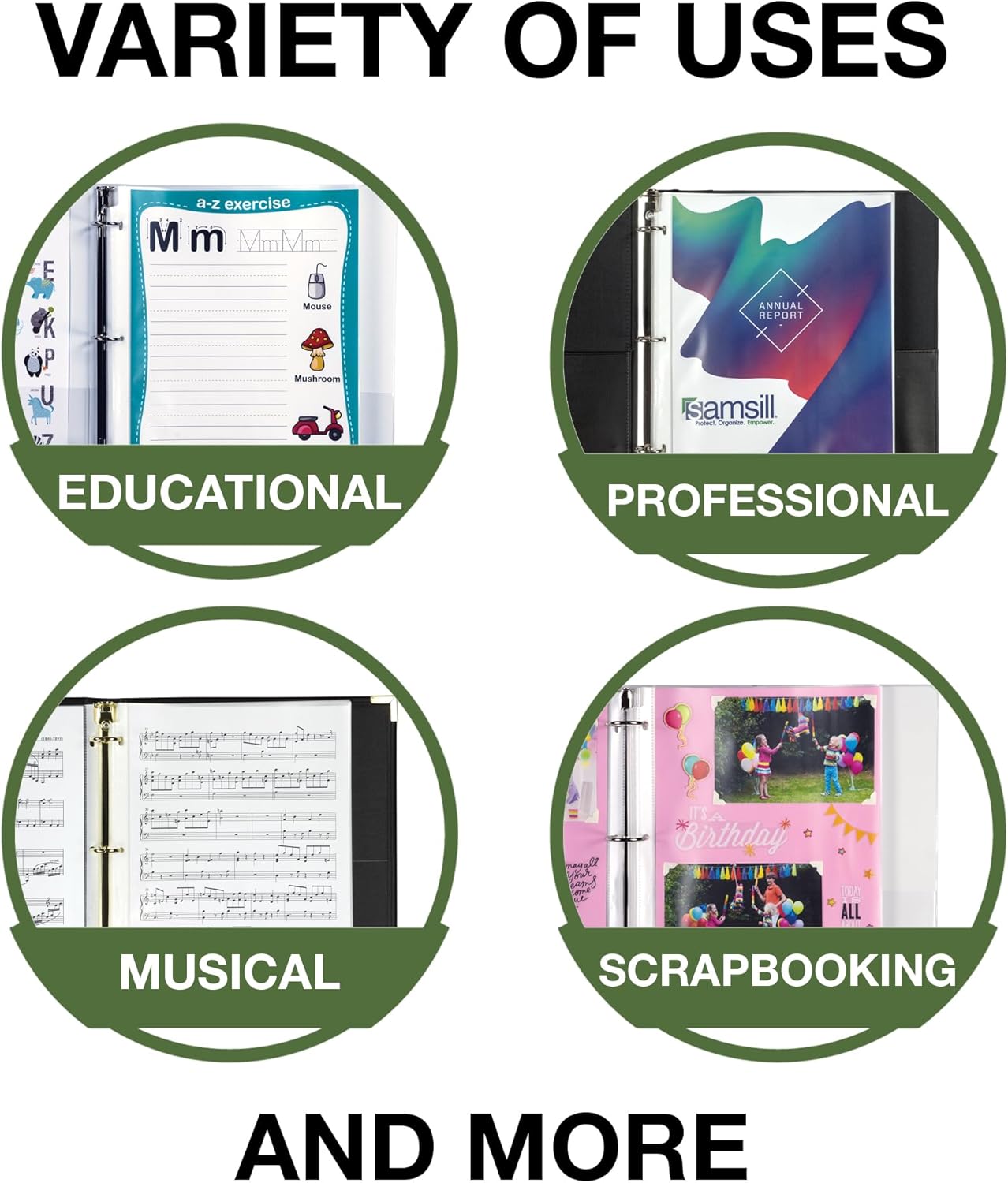 Experience the difference of our heavy-duty design. Unlike standard flimsy sleeves, Samsill sheet protectors feature a side-loading design that is wider than the average page protector, making it faster and easier to slide your papers in and out. The ultra-clear finish provides crystal-clear visibility for easy reading, while the advanced anti-glare finish reduces light reflection, ensuring your content is always visible without distracting shine.