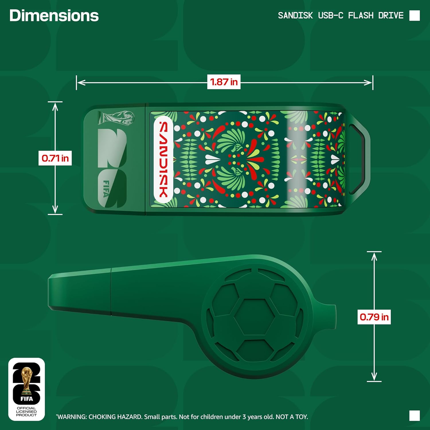 Celebrate the passion of the beautiful game with the SanDisk 128GB FIFA World Cup 2026 Edition USB-C Flash Drive. This limited-edition storage solution is officially licensed and designed for fans who want to keep the excitement of the tournament close at hand. Featuring a high-performance USB 3.2 Gen 1 interface, this drive offers blazing-fast read speeds of up to 300MB/s, allowing you to quickly transfer high-resolution photos and 4K videos of your favorite plays and goals.