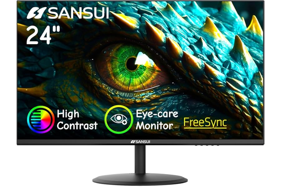 SANSUI Computer Monitor 24 inch Eye Care 1080P Display HDMI,VGA Ports with 178° Viewing Angle/Frame-Less/Tilt/VESA Compatible