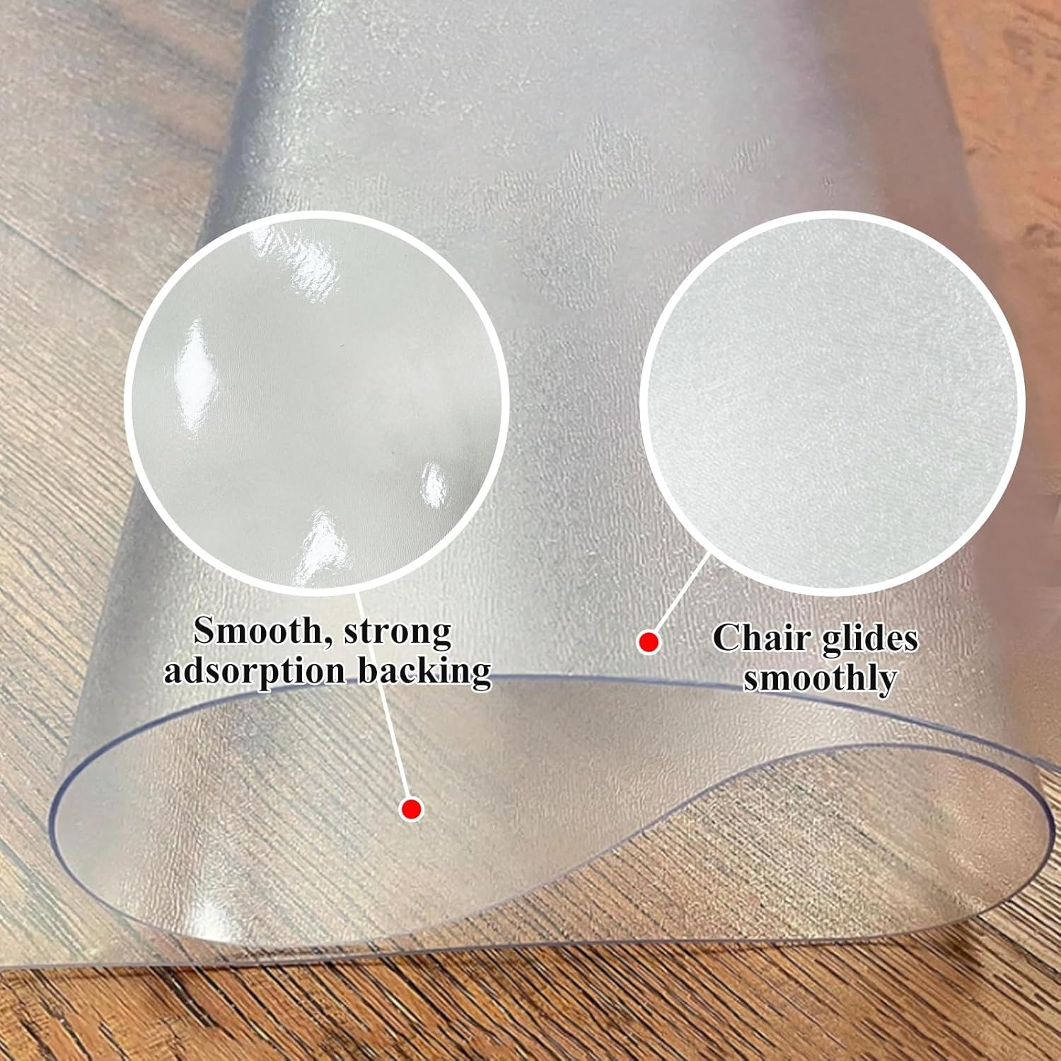Experience a stable and ergonomic workspace. The surface of our mat features a unique textured finish that provides superior grip for your chair wheels. This texture prevents the chair from sliding uncontrollably while ensuring smooth, effortless rolling. By reducing the resistance and struggle of movement, this mat helps considerably lower the risk of leg fatigue during long work sessions.
