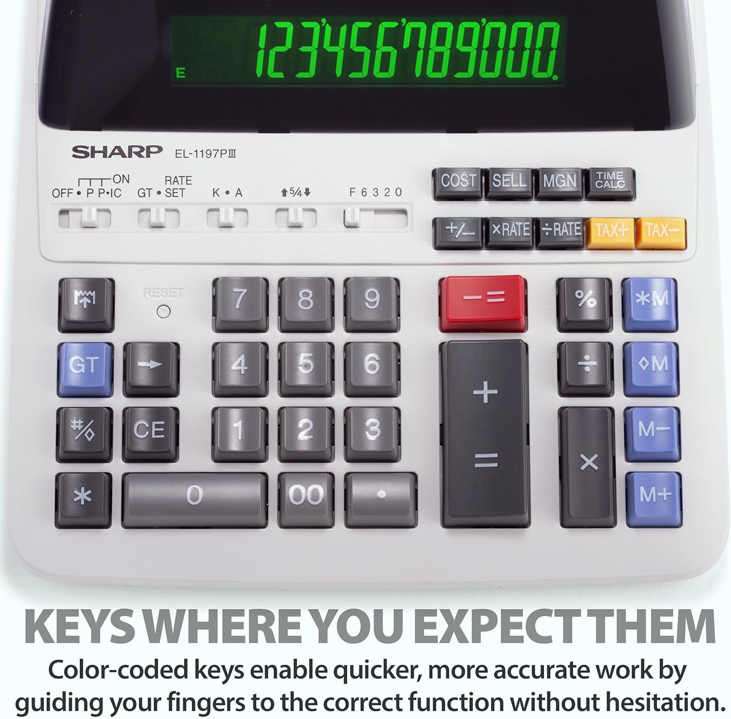 Built to withstand the rigors of daily use, the EL-1197PIII features a sturdy, heavy-duty chassis with a solid, stable base that stays put on your desk. Its professional keyboard layout includes a comfortable, tactile feel and color-coded keys for error-free data entry, eliminating the learning curve for new users. Beyond calculations, this versatile device functions as a clock and calendar, printing the date and time on your tape for precise record-keeping. Reliability meets convenience with standard replaceable ribbons and paper rolls, making maintenance effortless and keeping your office running smoothly.