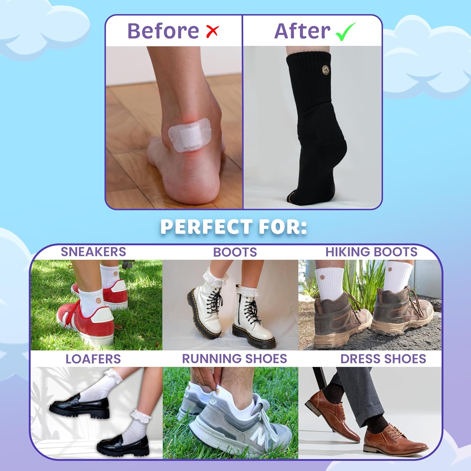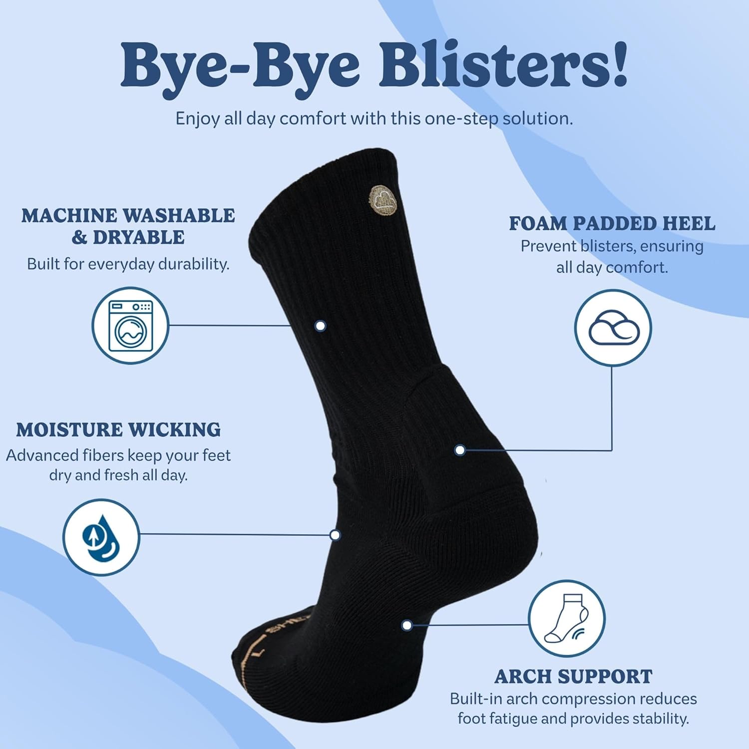 Tired of painful blisters ruining your day? Step into the comfort and confidence millions are discovering on TikTok with SHEZZA Anti-Blister Crew Socks. Meticulously engineered to provide superior protection, these socks feature a plush, padded heel cushion that creates a soft barrier against friction, stopping blisters before they even start. Say goodbye to the days of breaking in new shoes or suffering through long shifts on your feet.