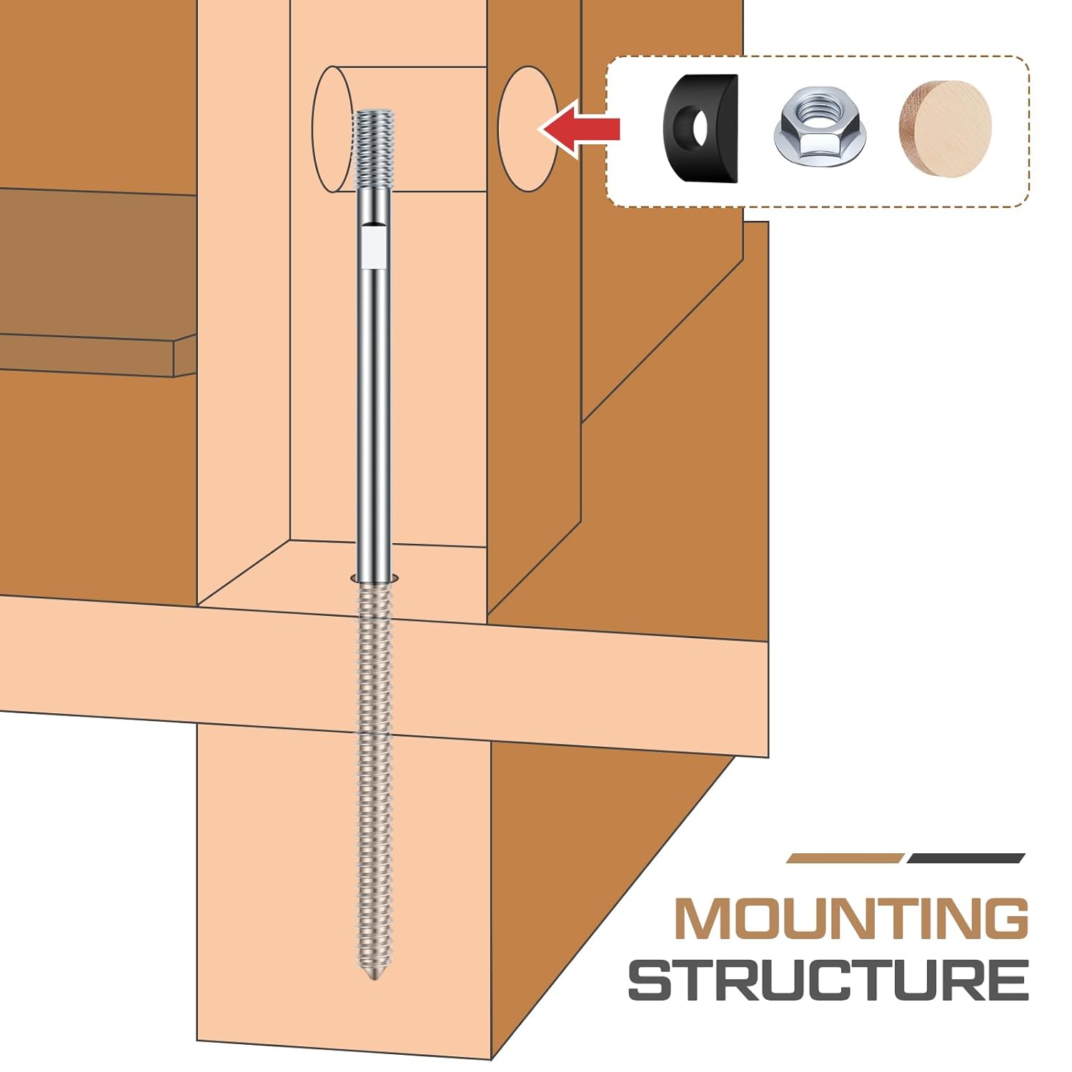 - Complete Installation Solution: Includes 2 full sets of mounting hardware, featuring 10-3/4″ steel lag bolts, curved washers, nuts, and wooden oak plugs for a secure setup.