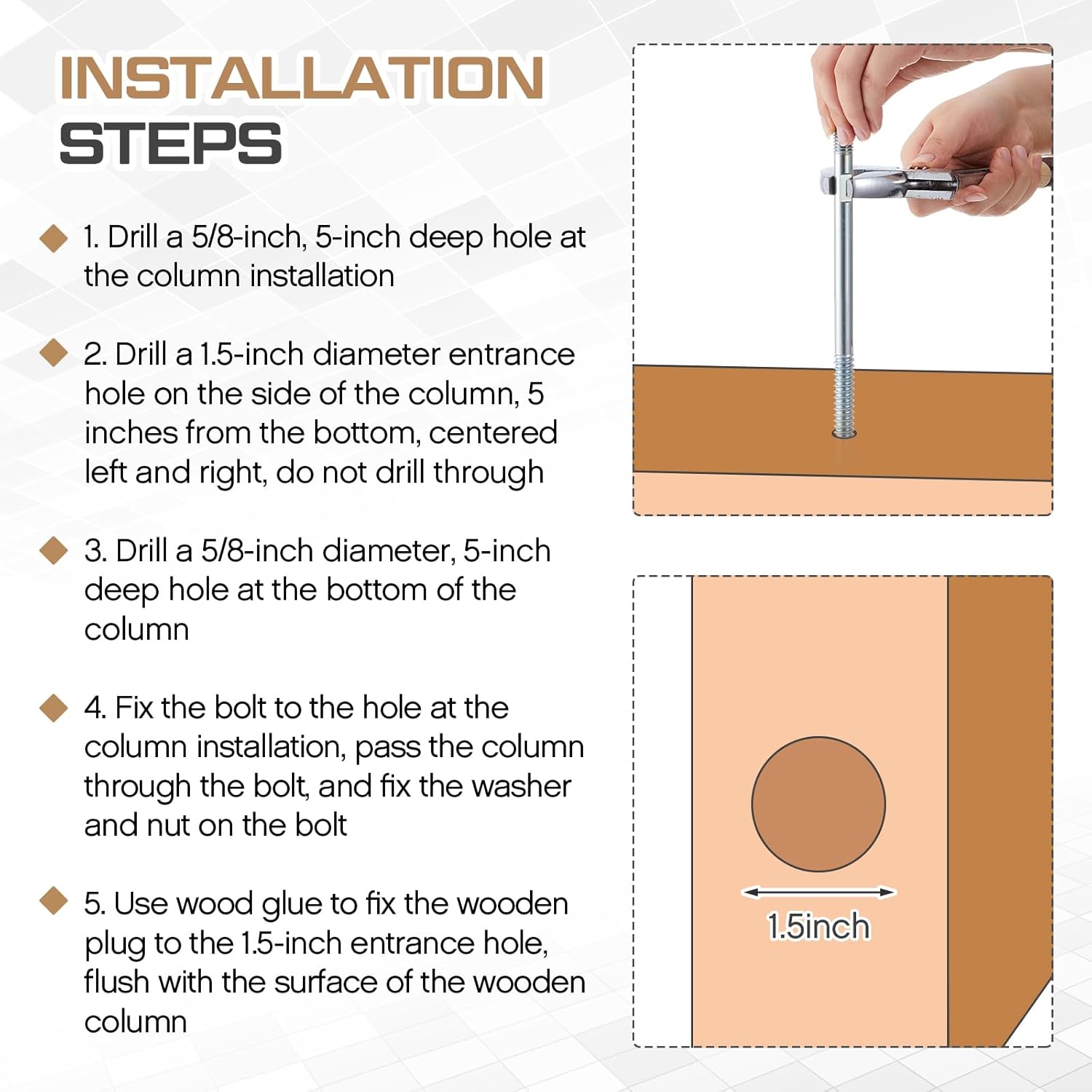 The genius of this system lies in its hidden installation design. Once installed, the hardware is completely concealed beneath the wooden plug, leaving the aesthetic beauty of your post uninterrupted by ugly metal plates or visible screws. This kit is an essential solution for DIY enthusiasts looking to install new railings or reinforce existing ones, offering a clean, polished look without compromising on structural integrity.