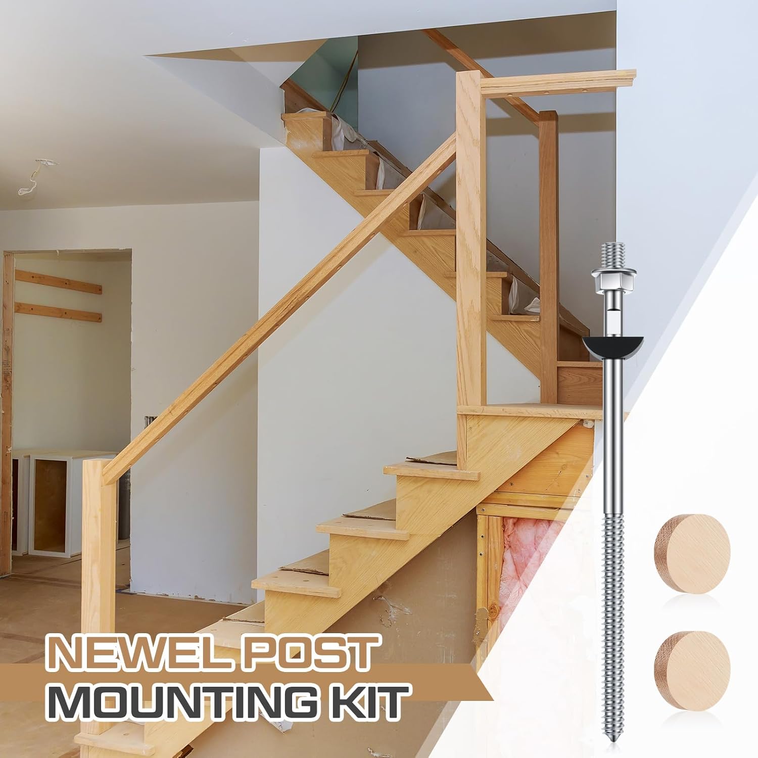 Shimeyao 2-Pack Wood Newel Post Mounting Kit – Heavy Duty Steel Fastener with Oak Plugs for Stair Railings & Handrails