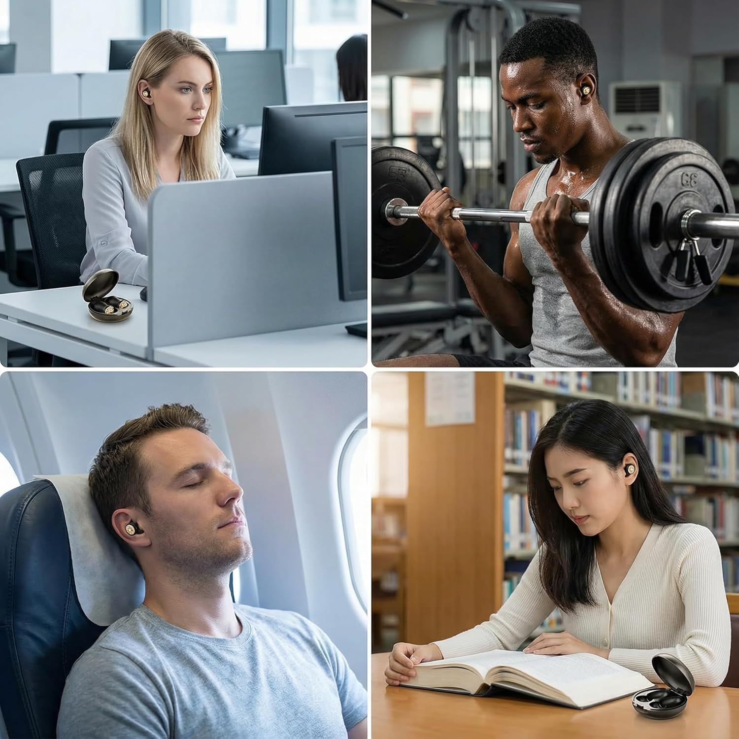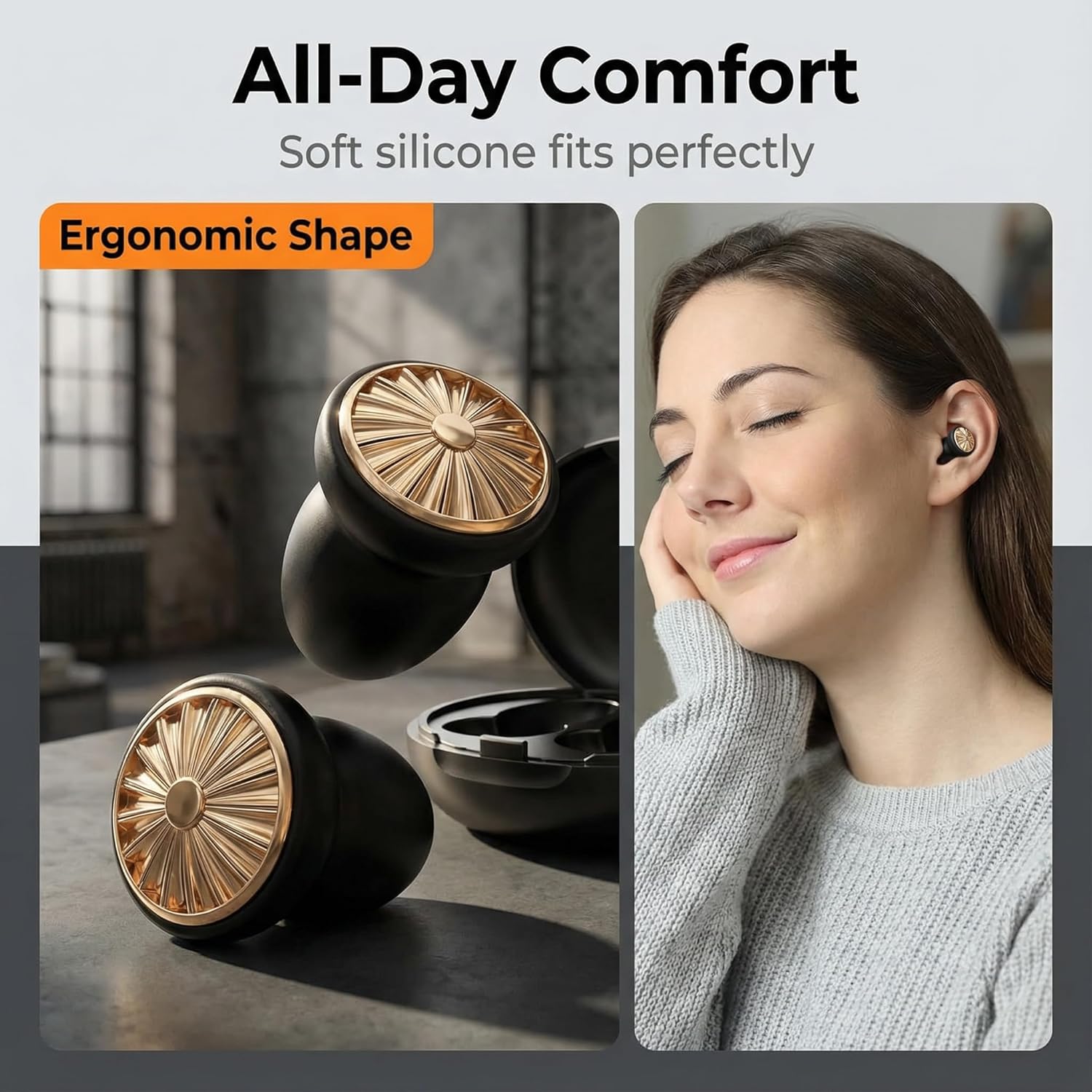 Experience superior sound isolation with the 2026 Airbag Style Noise-Reducing Silicone Earplugs. Engineered for versatility, these earplugs offer an impressive 48dB of noise attenuation, making them the ultimate solution for light sleepers, concert-goers, motorcyclists, and travelers. Crafted from premium, hypoallergenic silicone, they provide a plush, secure seal that blocks out disruptive noise without causing the pressure or discomfort often associated with foam earplugs. The innovative ergonomic design features a range of sizes (XS, S, M, L) to ensure a custom fit for any ear shape, guaranteeing that they stay in place whether you are sleeping, studying, or riding. Durable and washable, these reusable earplugs are a cost-effective and eco-friendly alternative to disposable options. The sleek ‘Black Gold’ finish adds a touch of elegance to your essential gear, while the compact carrying case makes them effortless to store in your pocket or bag. Protect your hearing and enjoy the peace you deserve with this professional-grade hearing protection set.