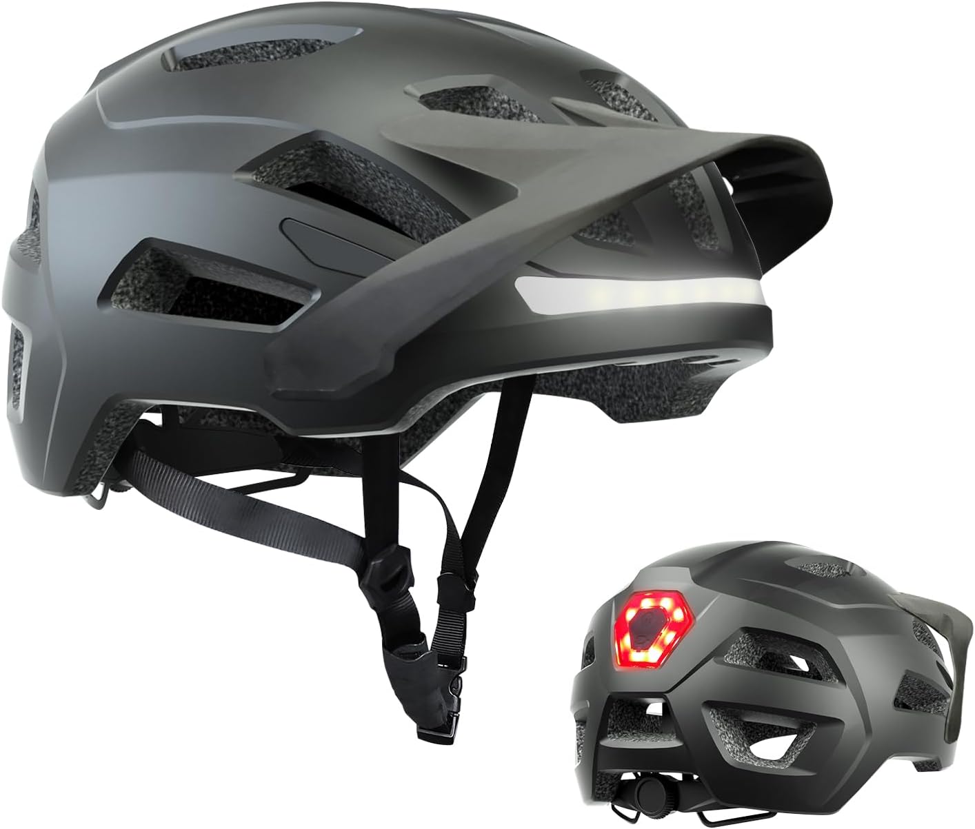 Silkycasters LED Bike Helmet for Adults – CPSC Certified Cycling Helmet with Front & Rear Safety Lights, Removable Sun Visor, and Adjustable Dial for Men & Women (Road, MTB, Commuter)