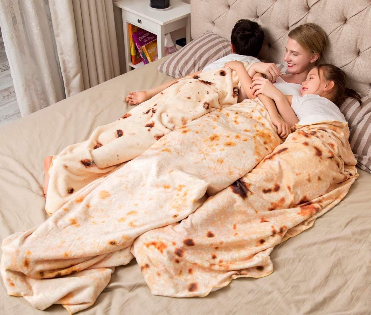 Live out the dream of becoming a giant burrito and add a dash of humor to your home decor with the SILUI Tortilla Blanket!