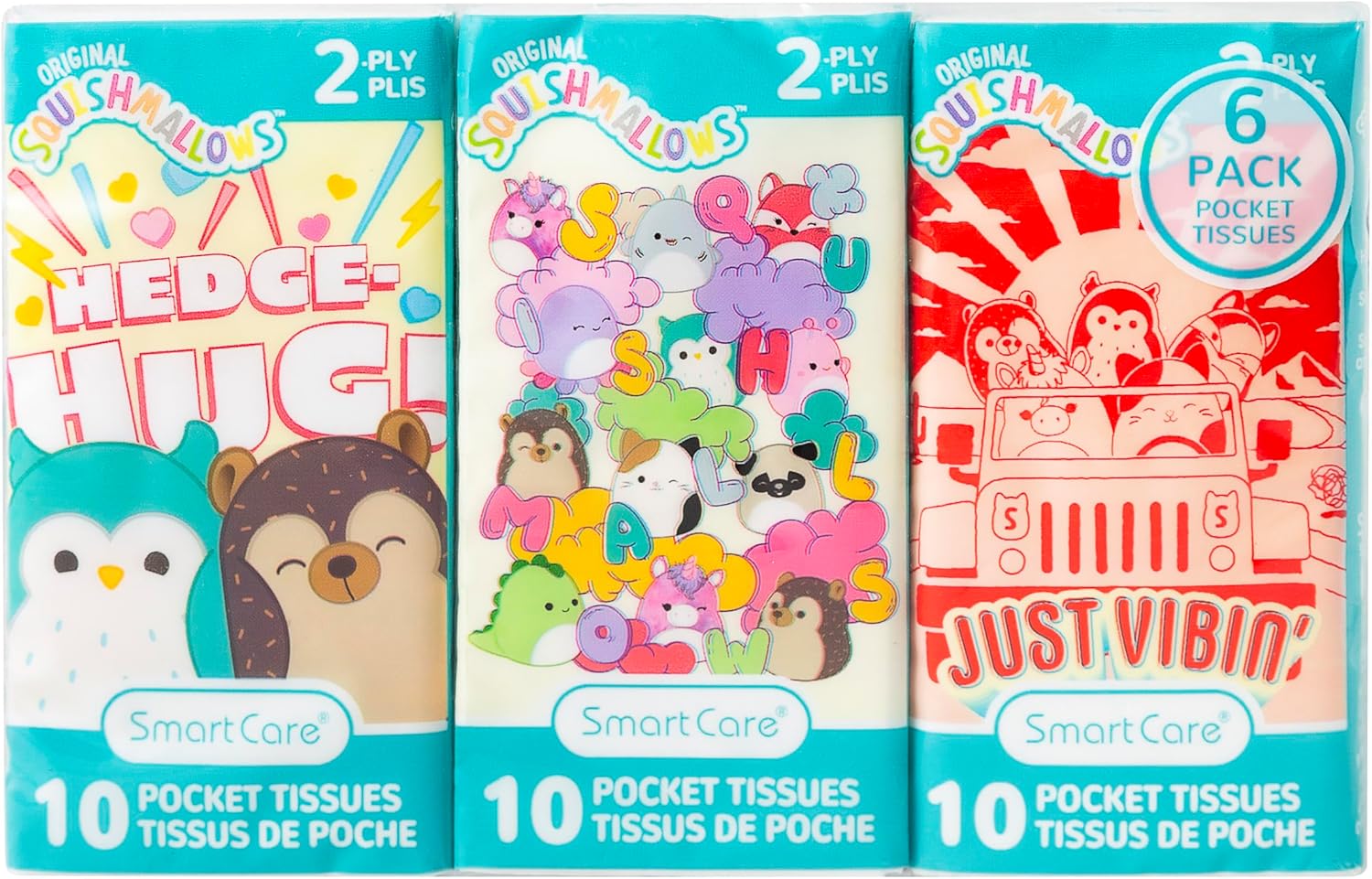 Smart Care Squishmallows Pocket Tissues – Ultra-Soft 2-Ply Facial Tissues, Portable 6-Pack Travel Pack – Cute & Absorbent On-the-Go Essential for Kids & Adults