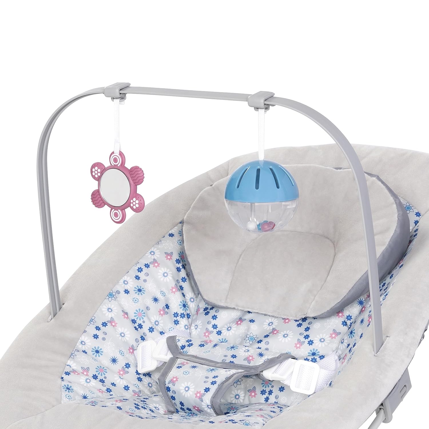 Early Learning & Development: More than just a seat, this rocker is equipped with engaging STEM-based toys to spark curiosity and support early developmental milestones. The interactive rattle ball and self-discovery silicone mirror encourage sensory exploration, fine motor skills, and focus. These toys are fully removable, allowing you to take the fun on the go.