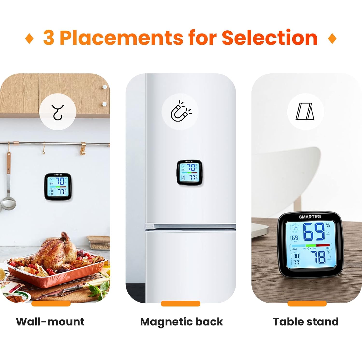 - MULTI-PURPOSE MOUNTING: Ultimate flexibility for placement. Use the strong magnets to attach to your refrigerator, the flip-out stand for your desk, or the wall-mount hole to hang it in your closet or grow tent.