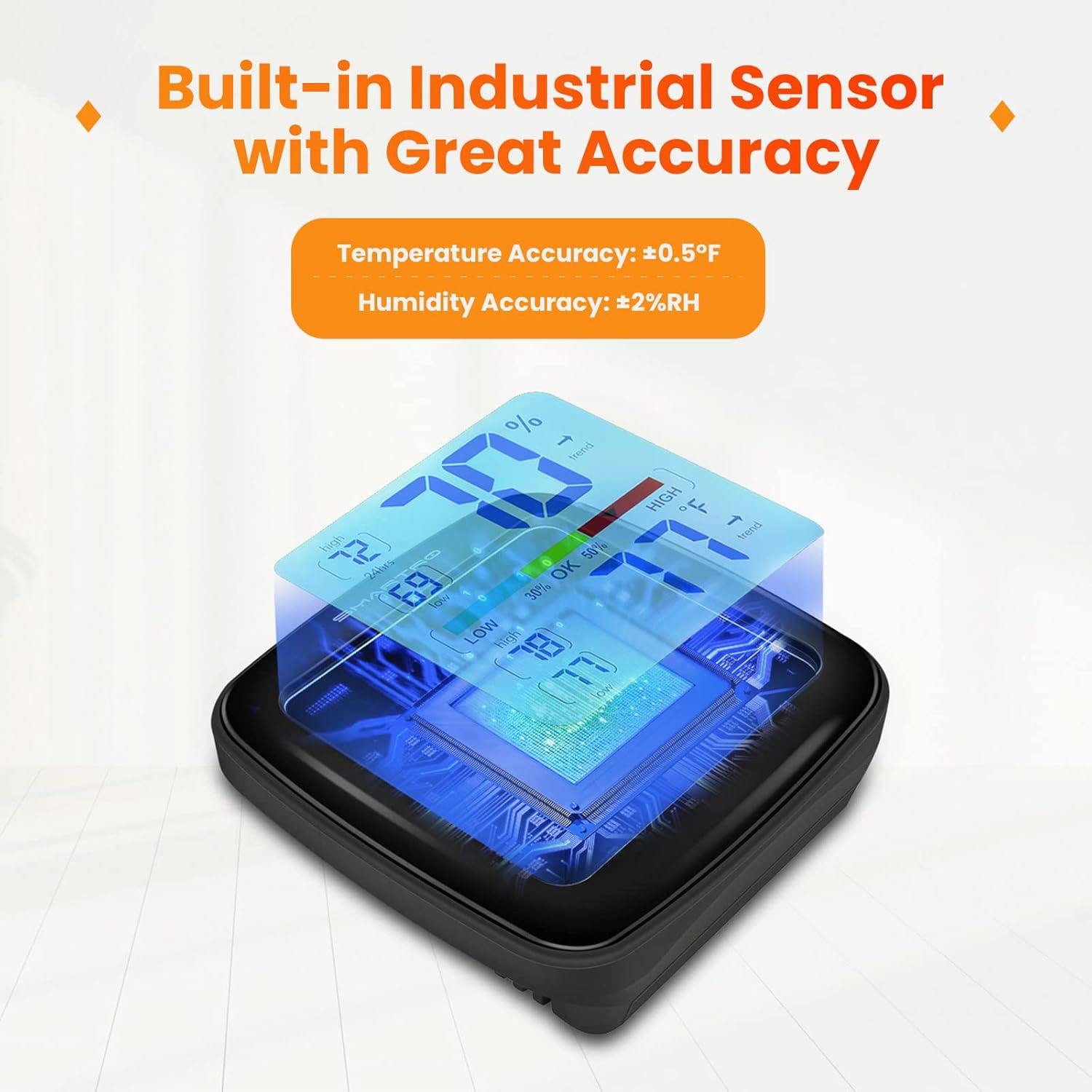 - High-Precision Monitoring: Experience pinpoint accuracy with a temperature tolerance of ±0.5℉ and humidity tolerance of ±2%RH. The device updates every 10 seconds to track even the slightest environmental changes.
