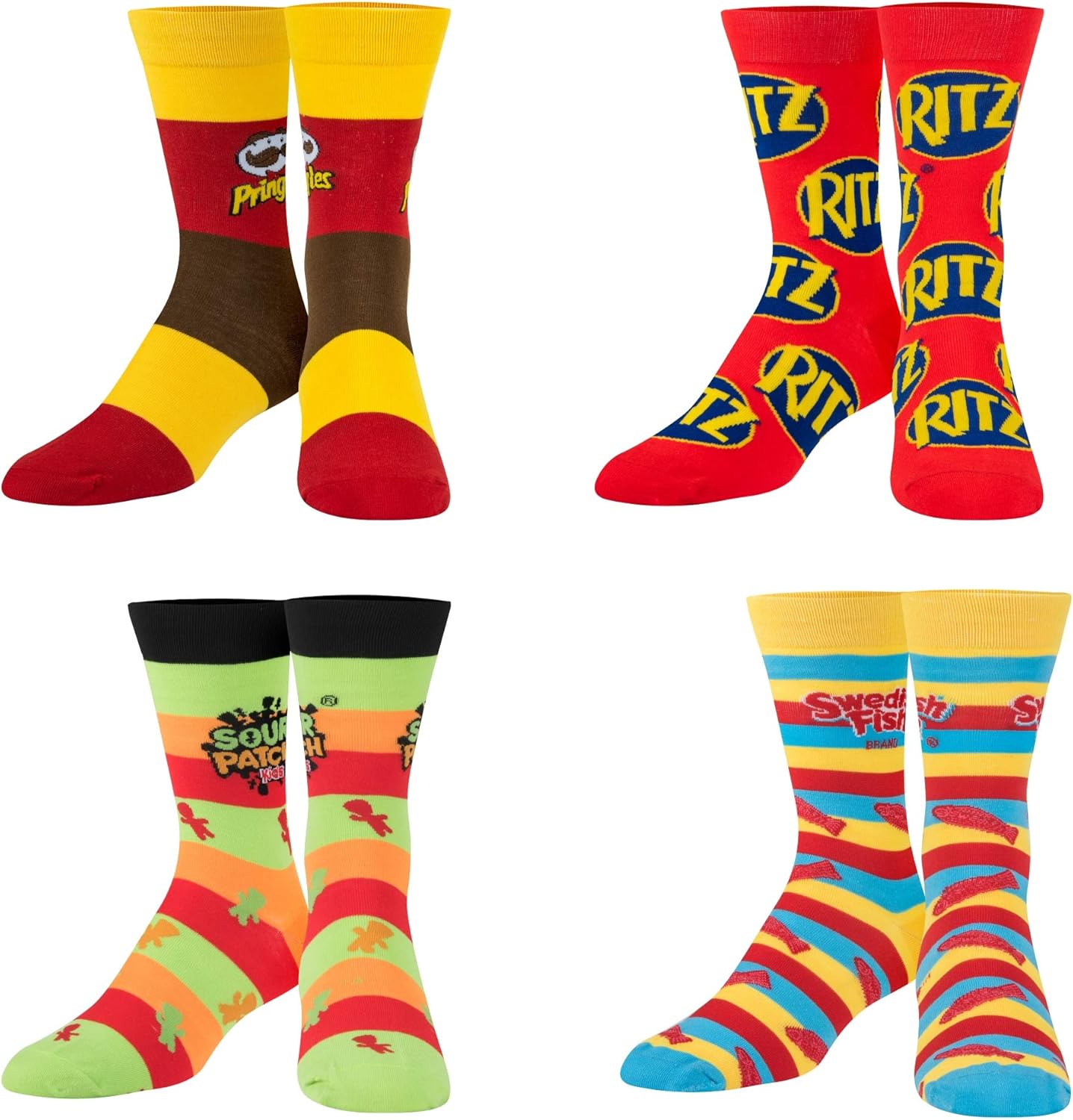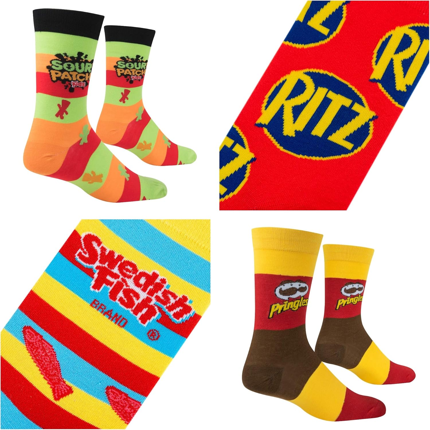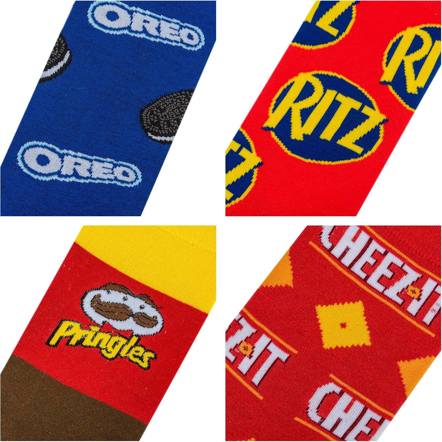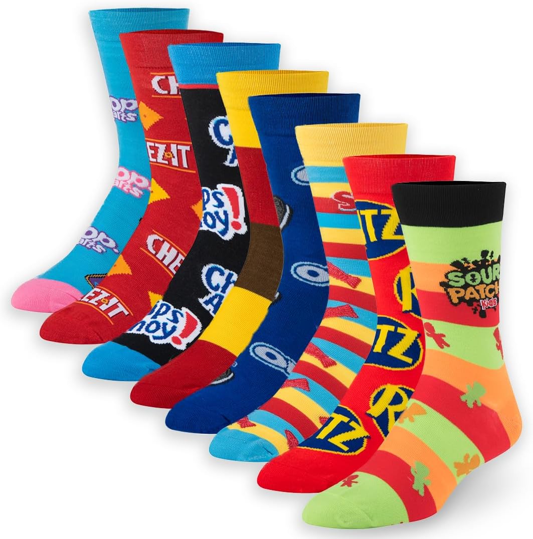 Satisfy your craving for comfort with this 8-pack Snack Food Novelty Crew Socks bundle. Perfect for foodies and trendsetters alike, this value set features a variety of vibrant, mouth-watering food patterns—including pizza, burgers, fries, and donuts—that add a delicious pop of personality to any daily outfit. Crafted from a premium, ultra-soft blend of breathable cotton and durable stretch fibers, these socks are designed to keep your feet cozy, dry, and comfortable all day long. The reinforced heel and toe ensure durability through every wash, while the flexible crew ribbed cuff stays securely in place without slipping. Whether you are lounging at home, heading to the office, or looking for the ultimate gag gift or stocking stuffer, these one-size-fits-most novelty socks are the perfect treat for your feet.