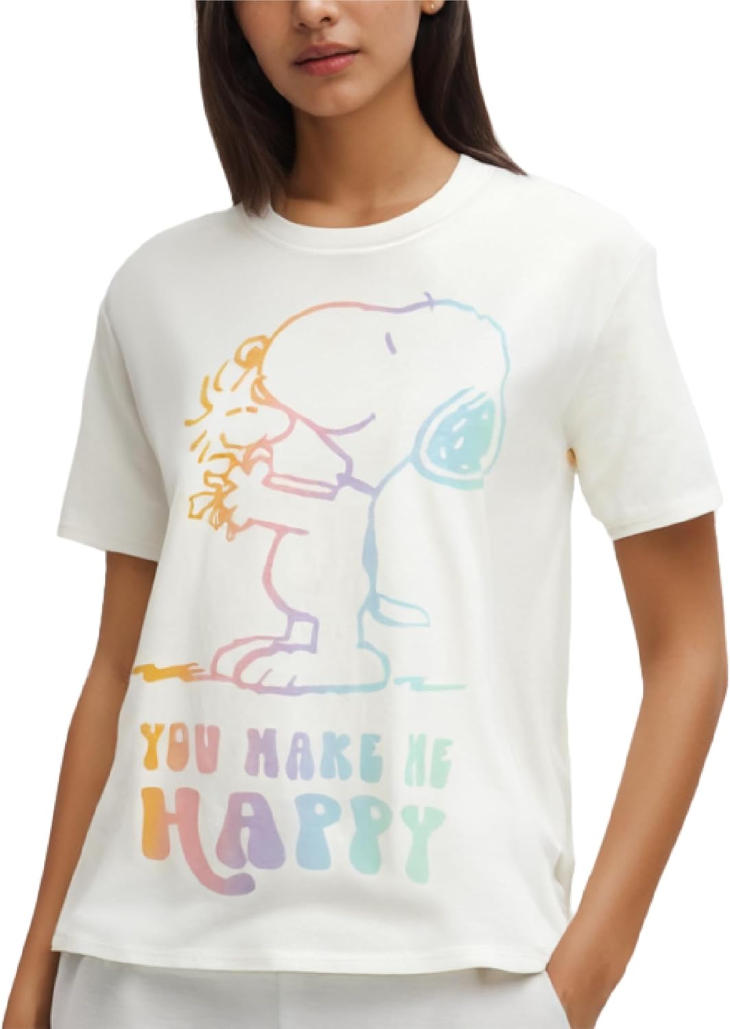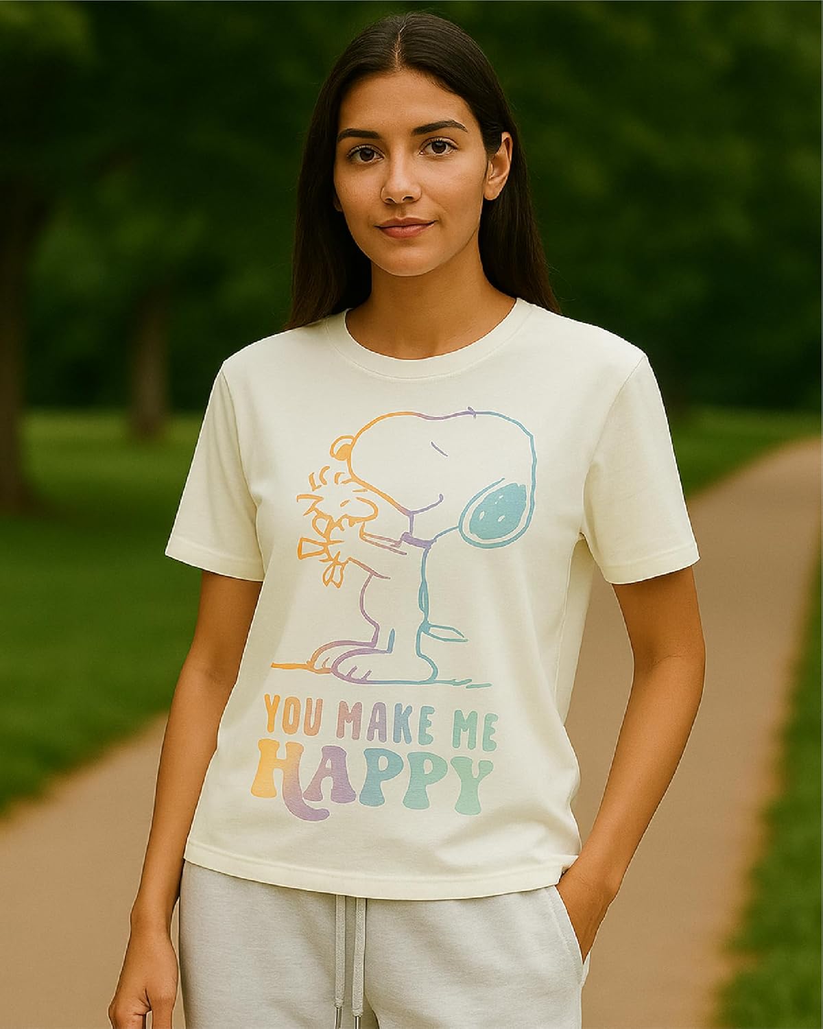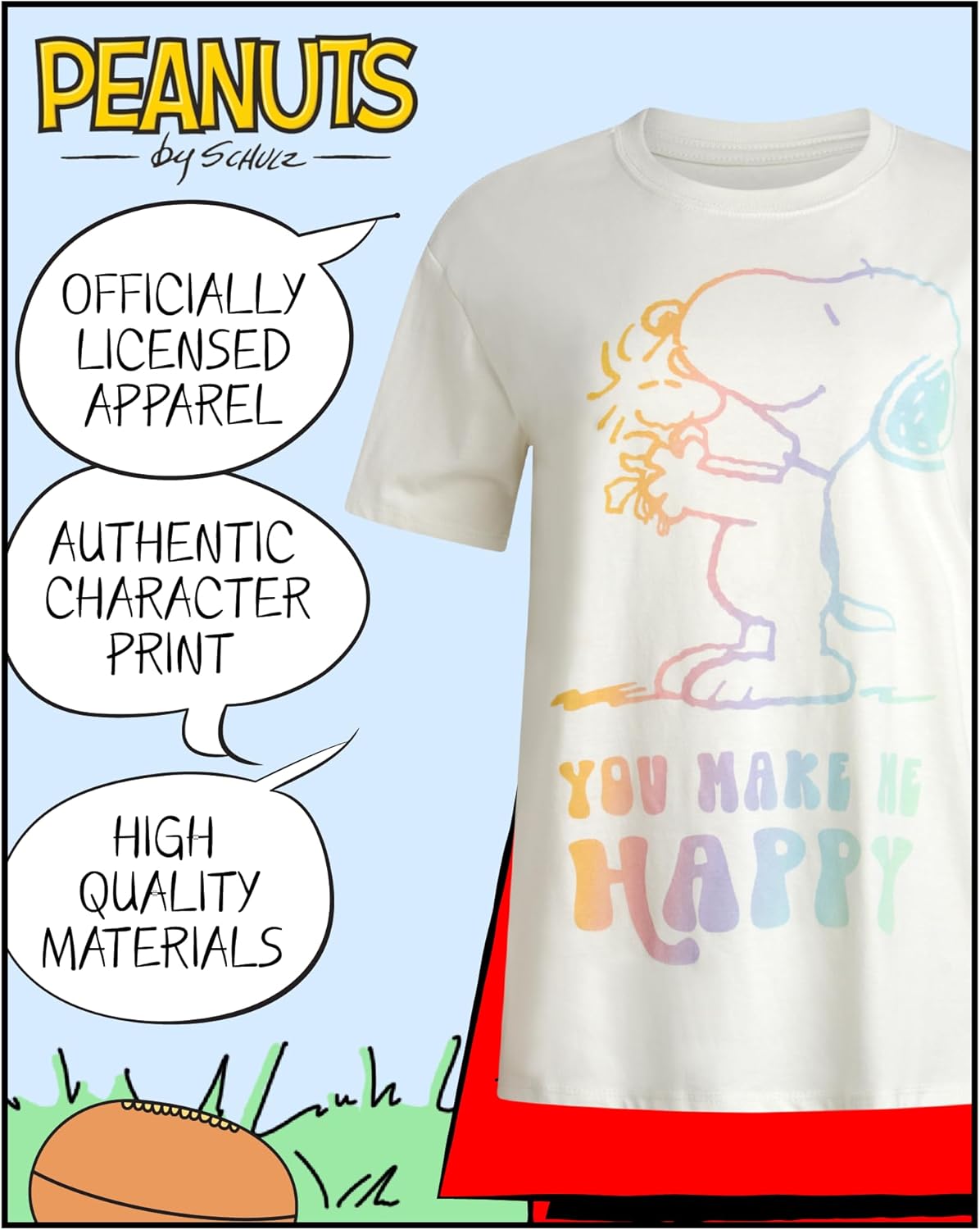 Step into the whimsical world of Charles M. Schulz with this officially licensed Peanuts graphic tee. Designed for the ultimate fan, this women’s short sleeve shirt features vibrant, high-quality prints of iconic characters like Snoopy, Woodstock, and Charlie Brown. Whether you prefer the classic beagle Scout or the effortless cool of Joe Cool, this shirt brings a touch of vintage nostalgia to your everyday wardrobe.