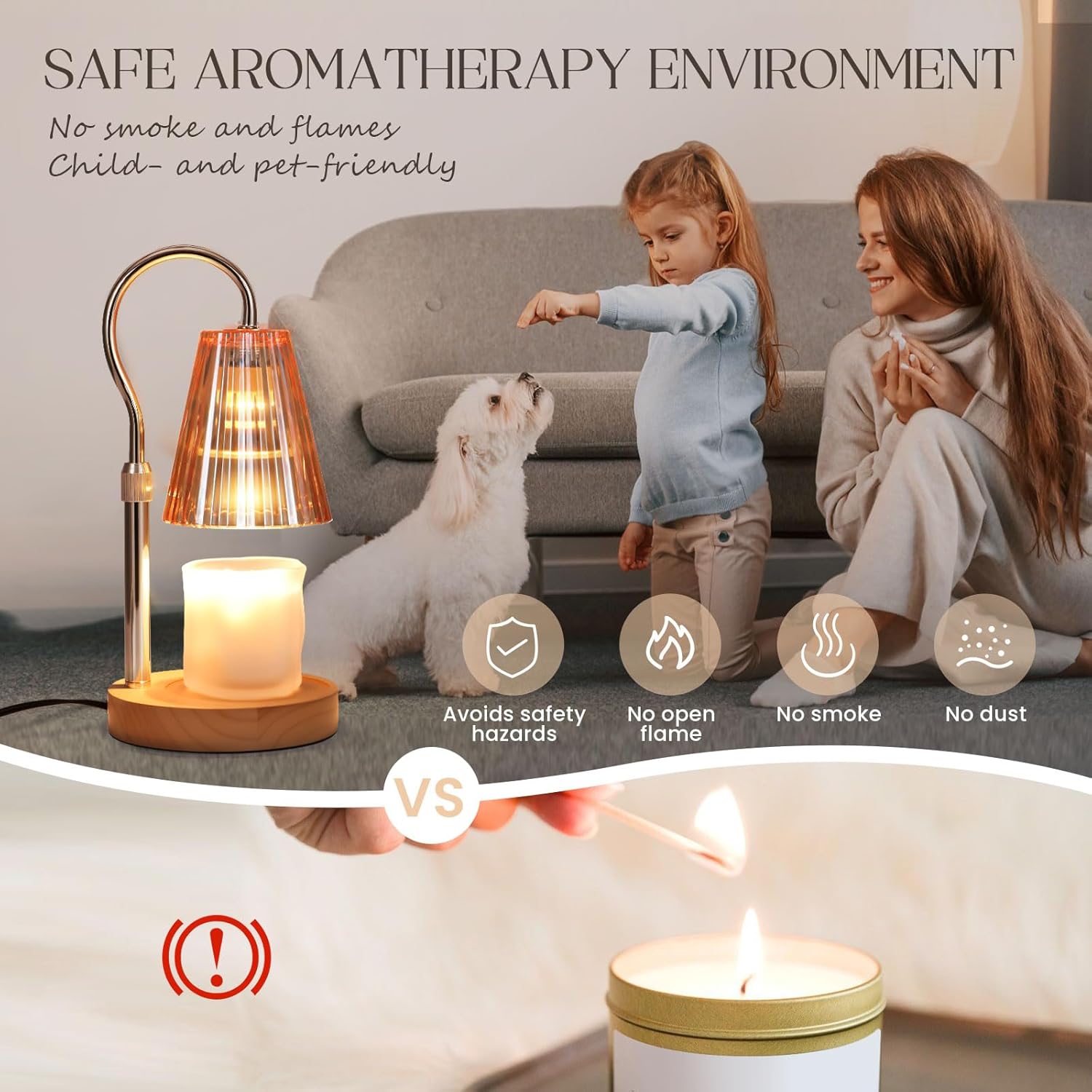 Engineered to accommodate a wide variety of candle sizes, the lamp head is adjustable from 4.33 to 7.48 inches, ensuring the perfect distance for efficient heat distribution. The stable wooden base features anti-slip pads to protect your furniture. Whether you are looking to elevate your home aesthetic or searching for the perfect housewarming, birthday, or holiday gift for mom, a friend, or sister, this vintage-style warmer combines functionality with elegant décor.
