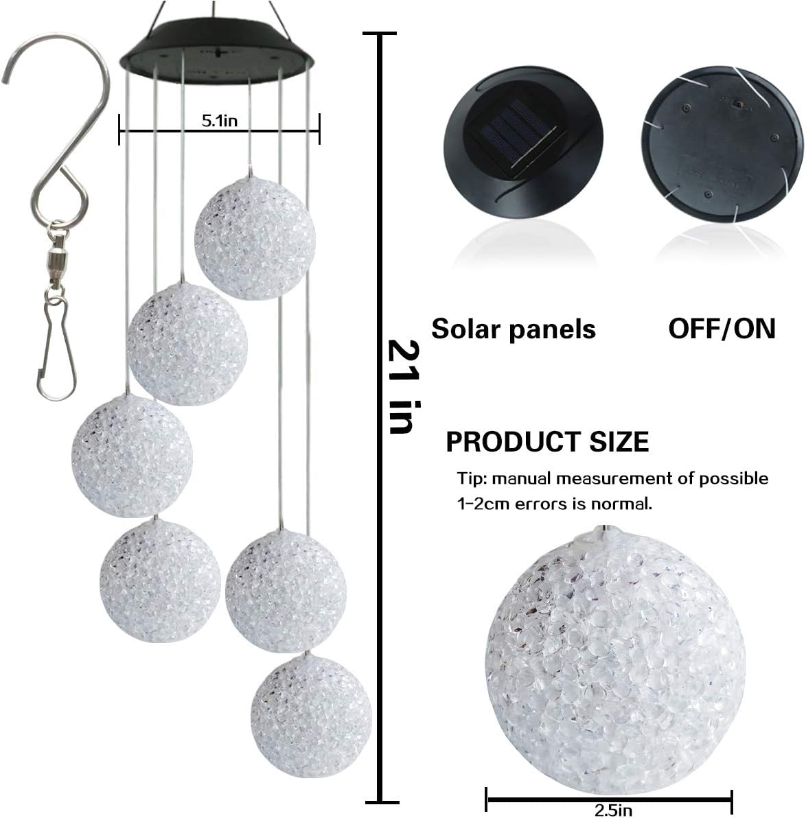 Dazzling Color-Changing LED: Equipped with a high-quality LED bulb that cycles through 6 soft, calming colors. The light refracts through the crystal ball and spiral spinner, creating a romantic and eye-catching display that brings a visual feast to any patio or garden.