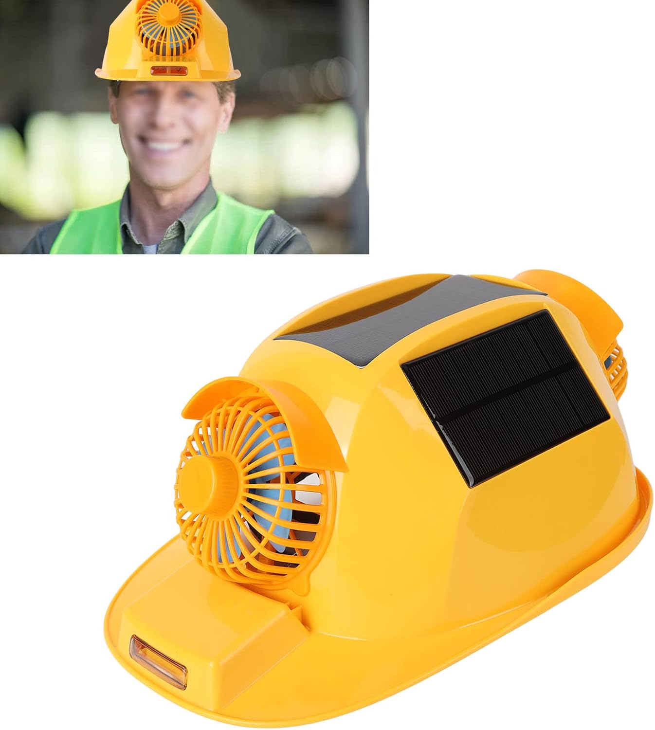 - Solar Powered: Harnesses solar energy to power the cooling fans and lights, offering an eco-friendly solution to maintain airflow throughout the workday. (Note: This unit does not include a power storage battery).