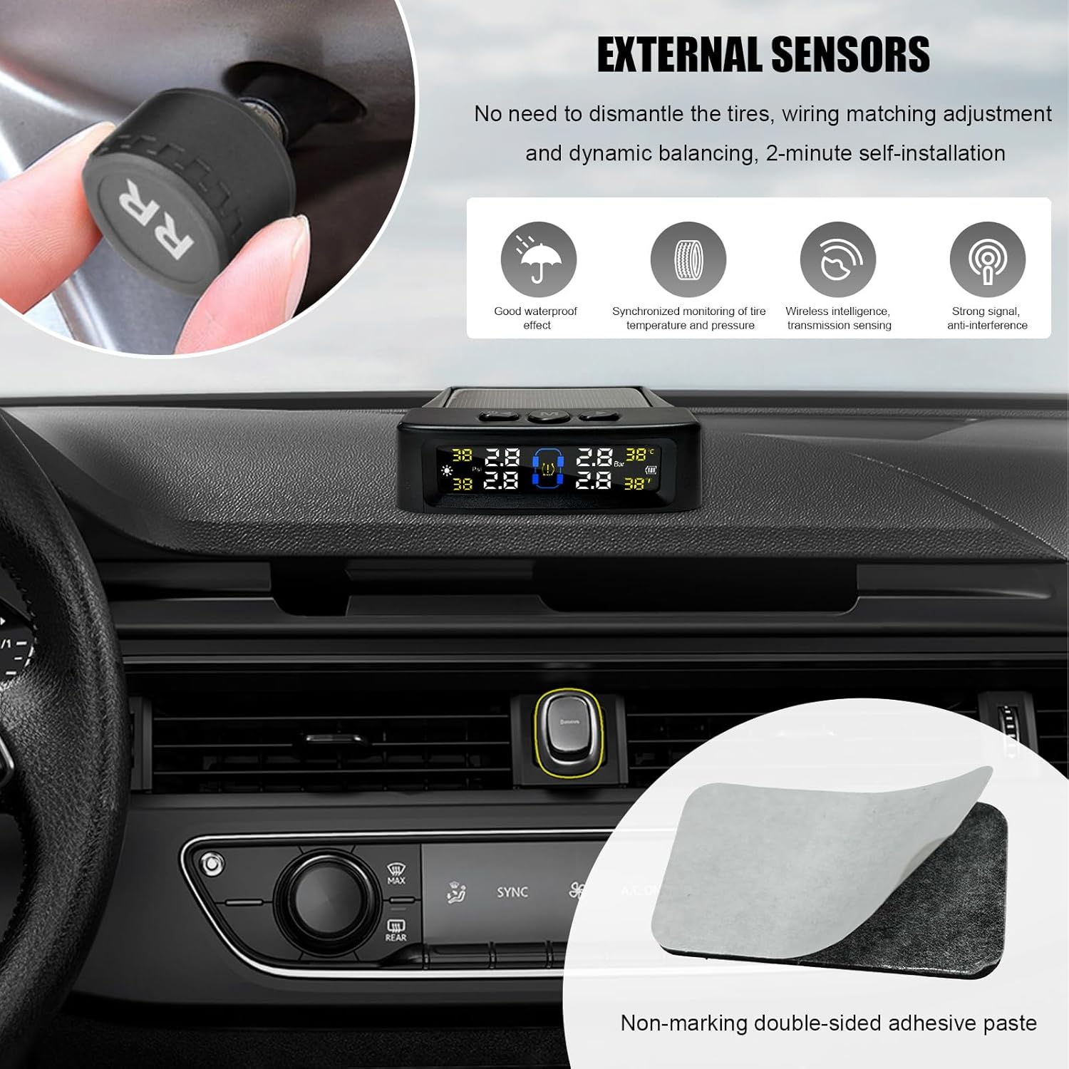 Installation is effortless: The anti-theft, waterproof sensors simply screw onto your tire valves (replacing the caps), and the compact monitor mounts securely to your dashboard using the included double-sided tape. It is a universal fit suitable for cars, SUVs, and small trucks.