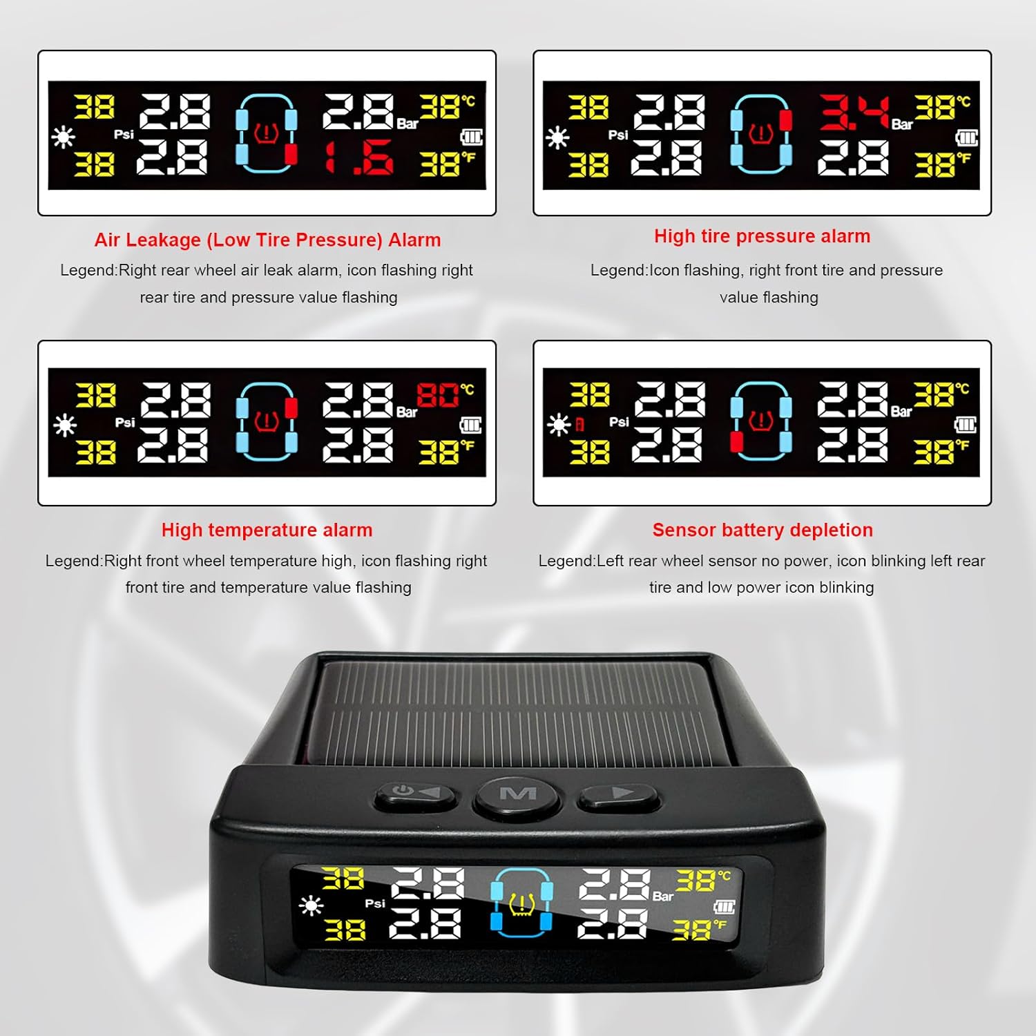 • 6 ALARM MODES: Immediate audio and visual warnings for rapid air leakage, high pressure, low pressure, and high temperature to prevent blowouts.