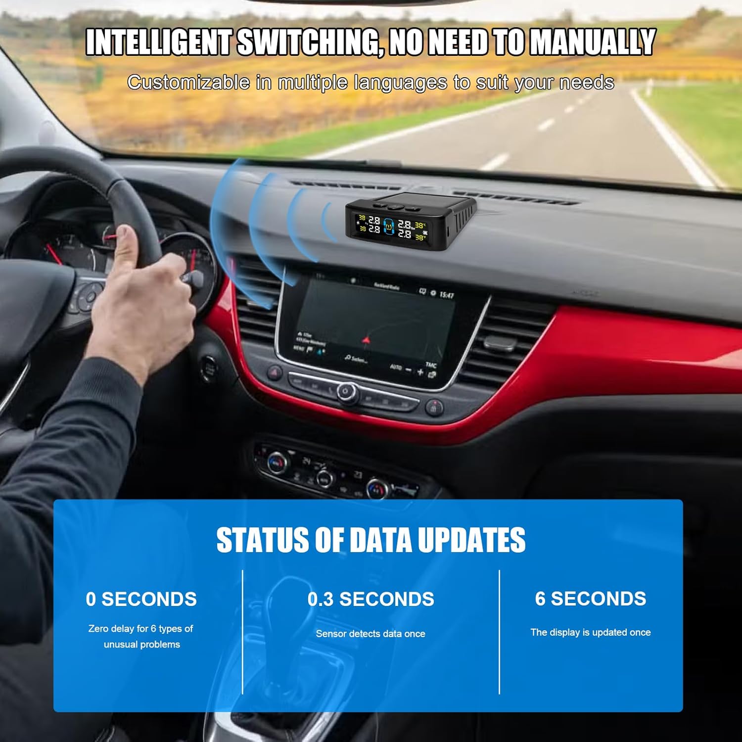 • SMART AUTO ON/OFF: The LCD screen wakes up automatically upon vehicle vibration and enters sleep mode when stationary to save energy.