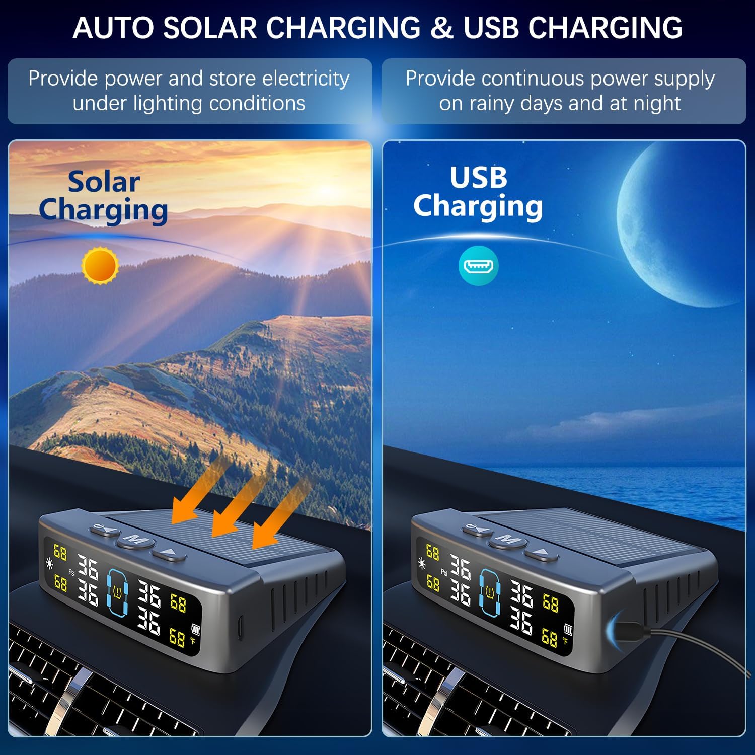 - Uninterrupted Power Supply: Features a high-efficiency solar panel for automatic charging during the day, backed by USB charging capability for nighttime or cloudy conditions. Never worry about dead monitor batteries again.