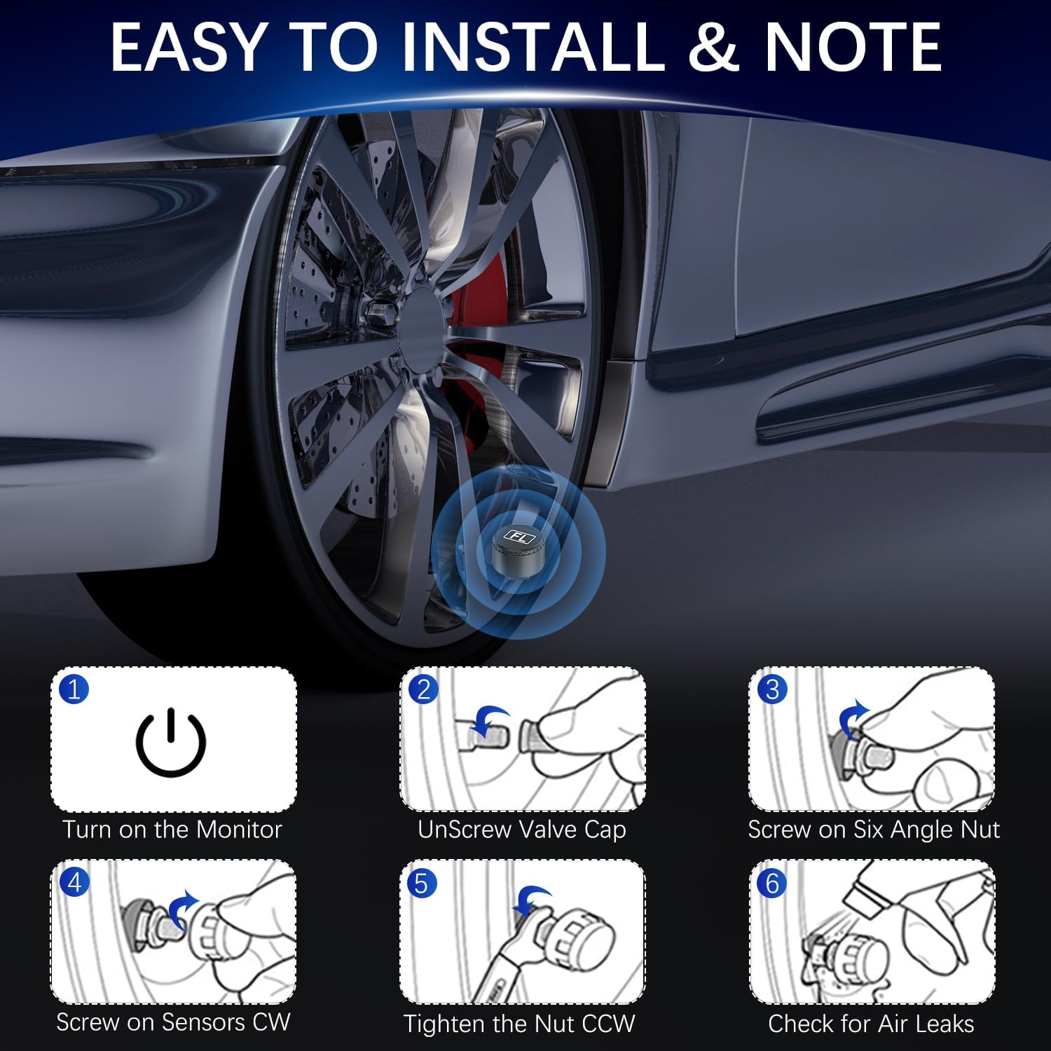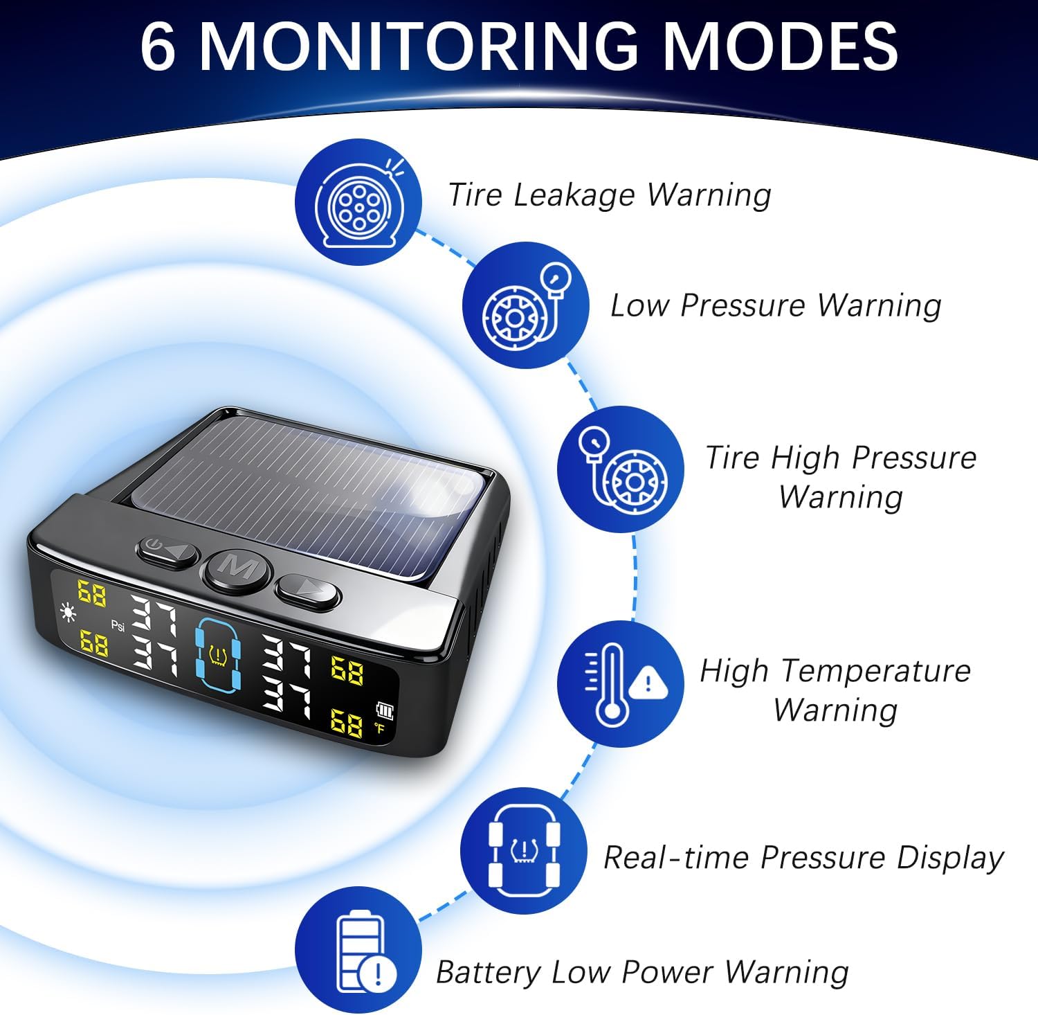 - Comprehensive Alarm System: Stay protected with 6 distinct alarm modes: Fast/Slow Leak, High/Low Pressure, High Temperature, and Low Sensor Battery. The system auto-learns your reference pressure upon installation.