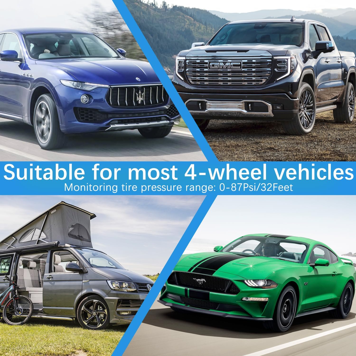 - Precision Monitoring: Equipped with 4 waterproof external sensors offering a range of 0-88 PSI. Advanced technology ensures low power consumption (up to 2 years of sensor life) and accurate readings within a 3 PSI margin.