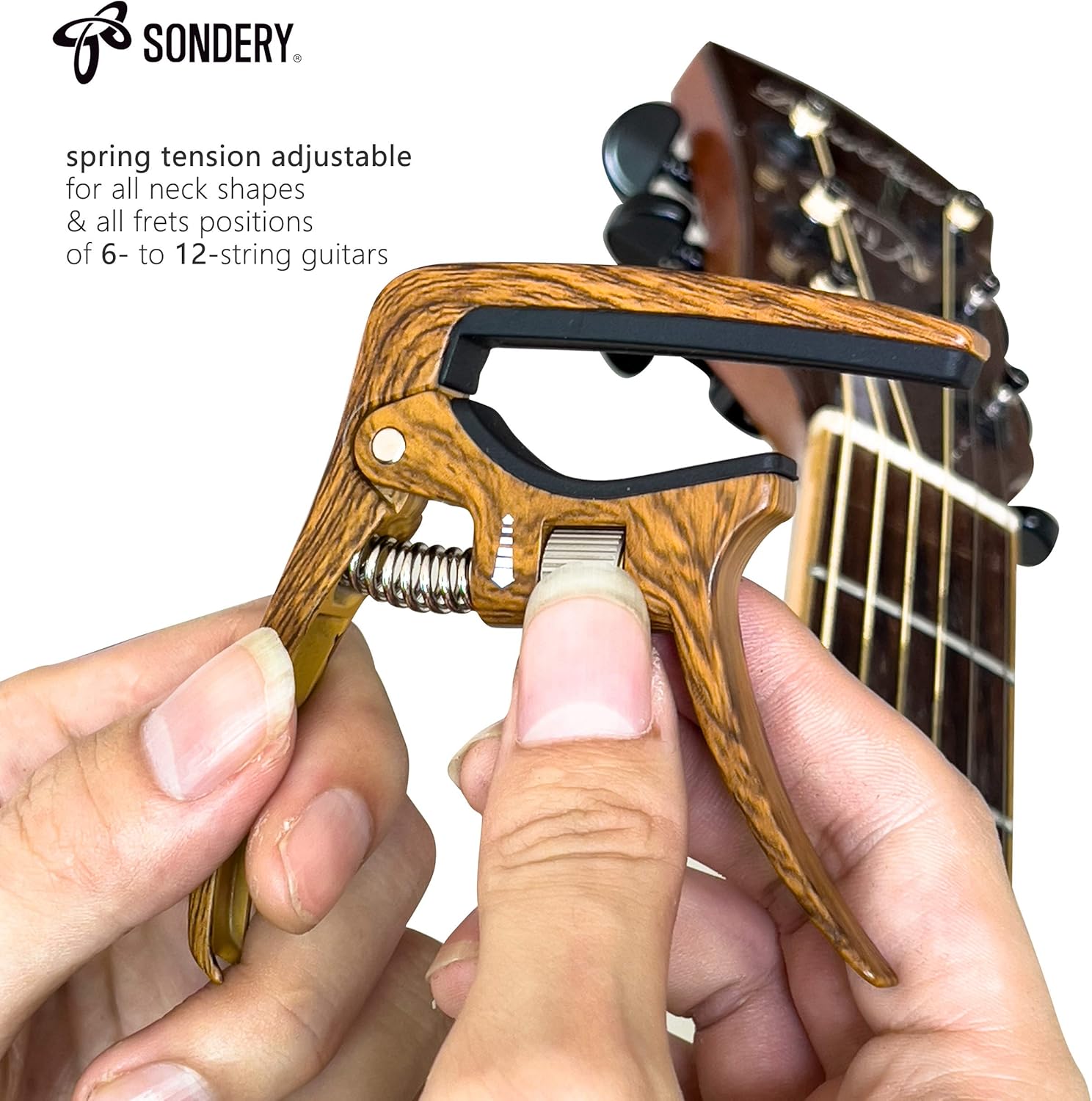 Unlock the perfect tone on every fret with the Sondery Professional Guitar Capo. Engineered for both 6-string acoustic and electric guitars, this capo features an adjustable spring tension mechanism that allows you to apply just the right amount of pressure. This eliminates fret buzz and ensures optimal intonation across the entire fingerboard, whether you are playing an open chord or high up the neck.