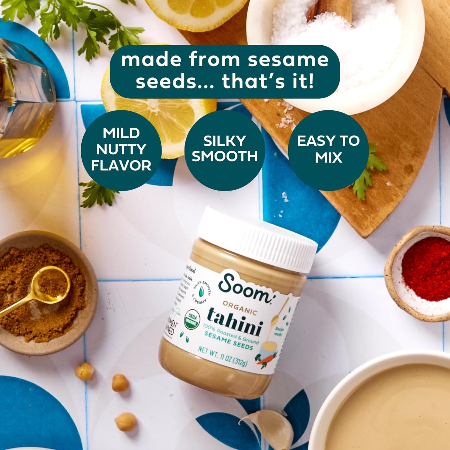 Soom Foods Premium Organic Tahini – 11oz Jar of Roasted Sesame Paste – Vegan, Nut-Free, Keto & Paleo Butter for Hummus, Sauces, and Baking