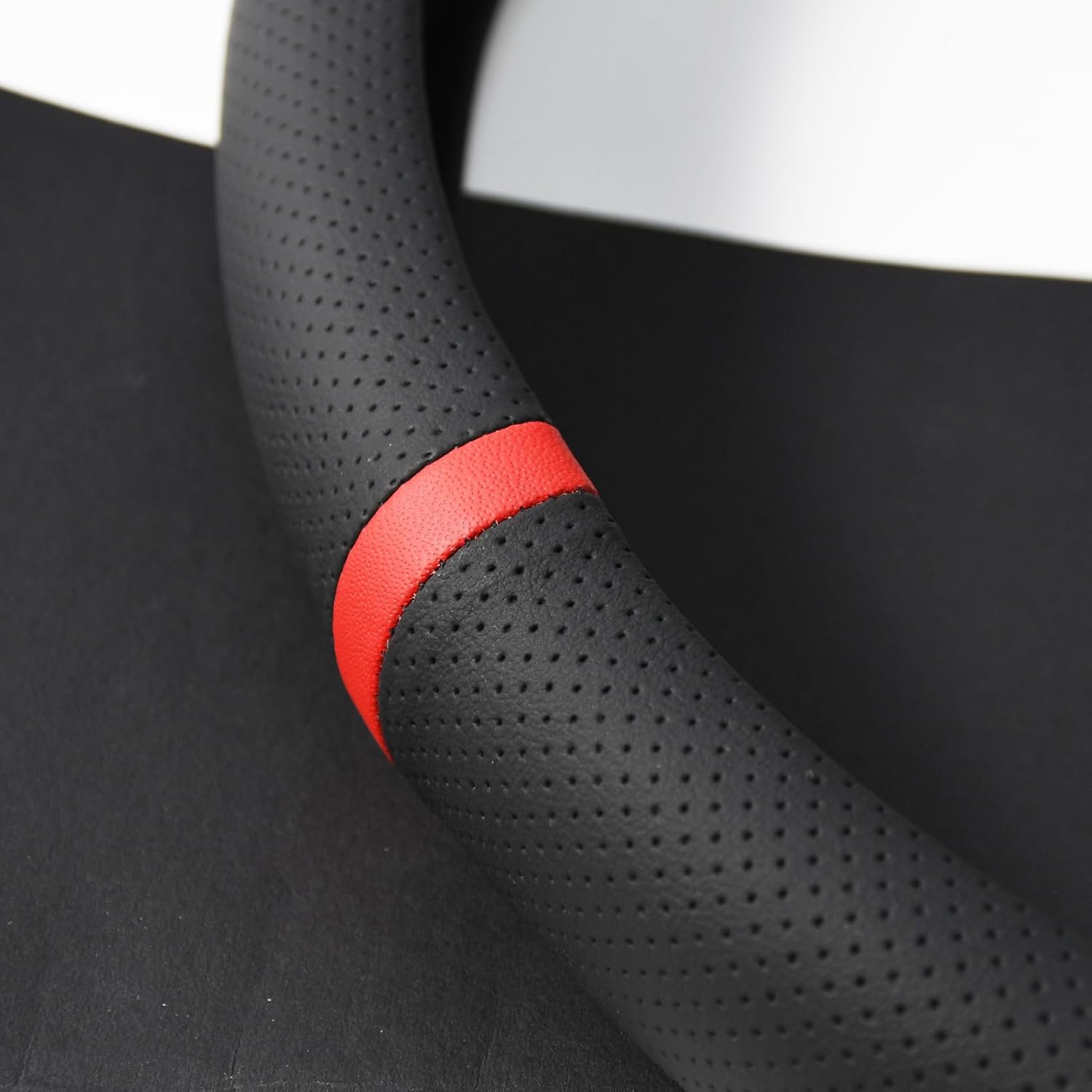 Upgrade your driving experience with the ultimate blend of luxury and performance. This Quick-Install Steering Wheel Cover is designed for drivers who demand both style and substance. Wrapped in premium, breathable perforated Nappa leather, it offers a tactile, race-inspired feel that improves grip and handling, especially during long drives or spirited driving. The distinctive red circular stripe trim adds a vibrant, sporty aesthetic to your vehicle’s interior, instantly modernizing the look of your cockpit.