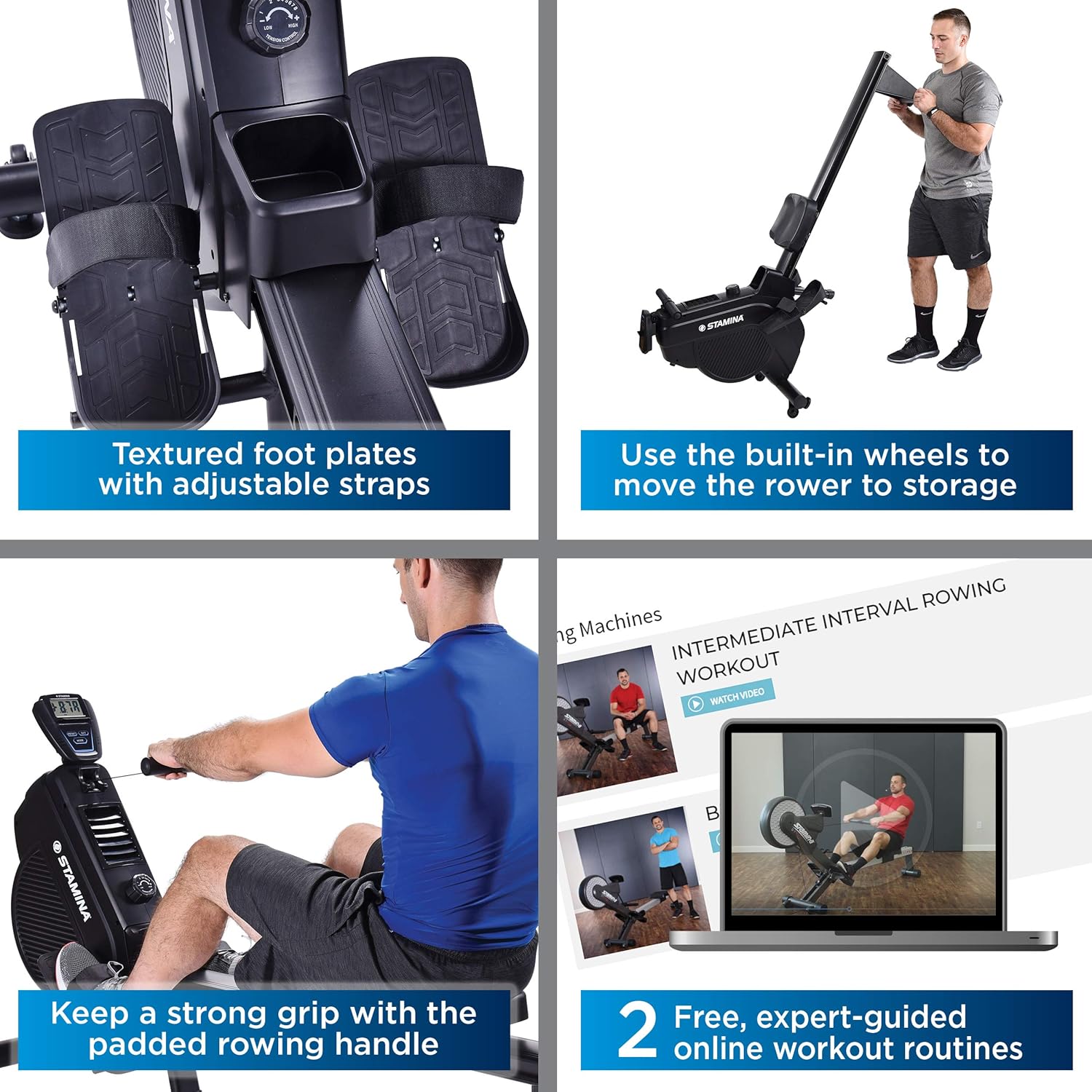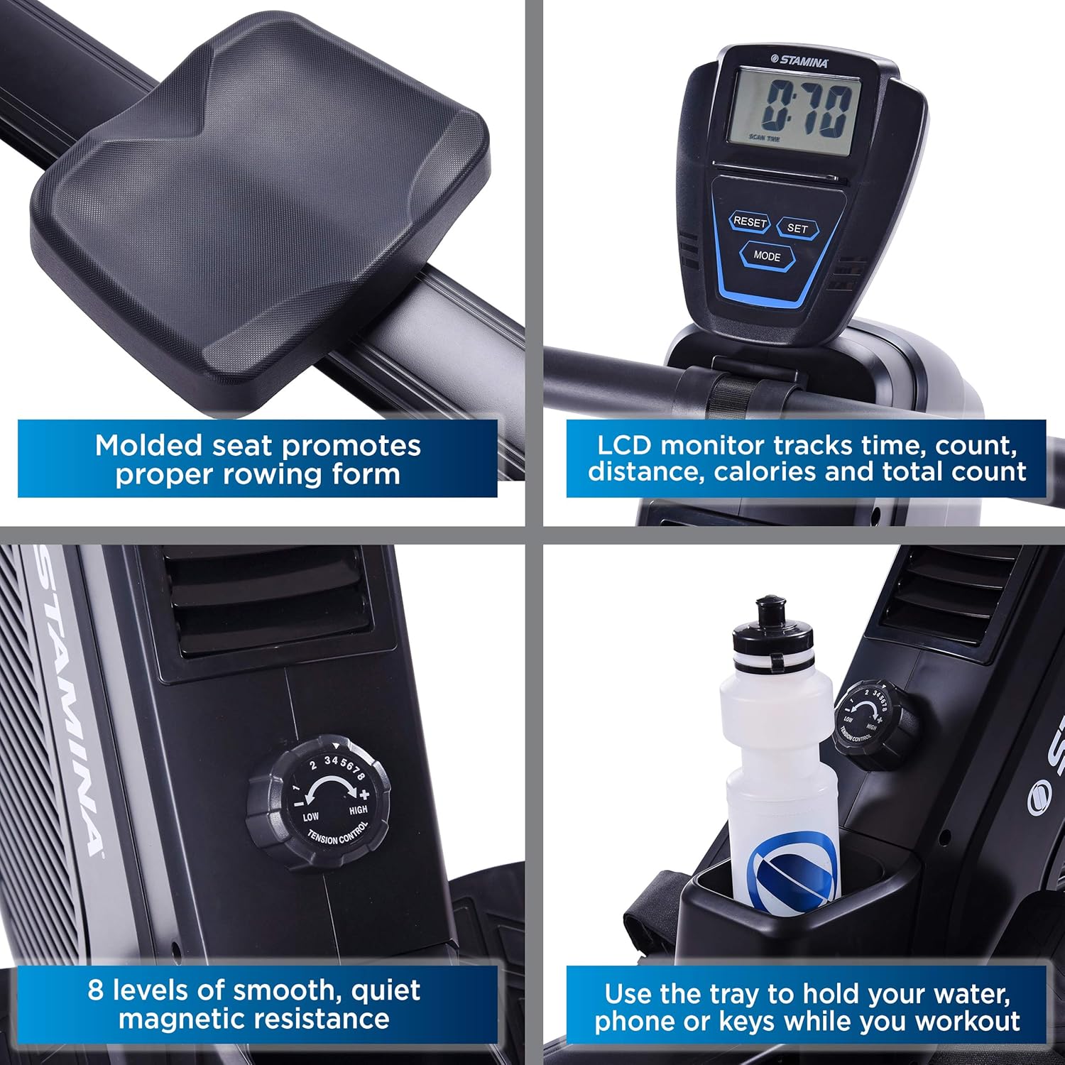 Experience the ultimate full-body workout with the Stamina Dual Air and Magnetic Resistance Rower. Engineered to combine the benefits of cardiovascular training with strength building, this machine utilizes a unique dual-resistance mechanism. The air resistance dynamically responds to your stroke intensity—the harder you pull, the greater the resistance—while the 8-level magnetic tension knob allows you to customize your baseline difficulty for precise control over your regimen.
