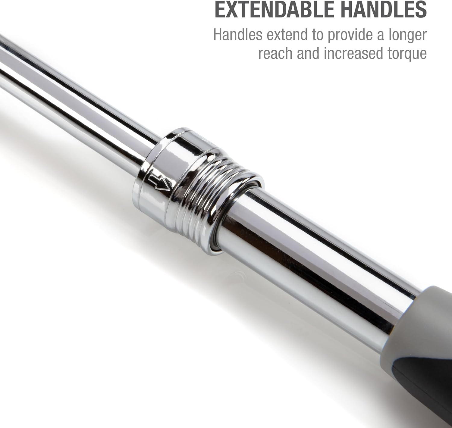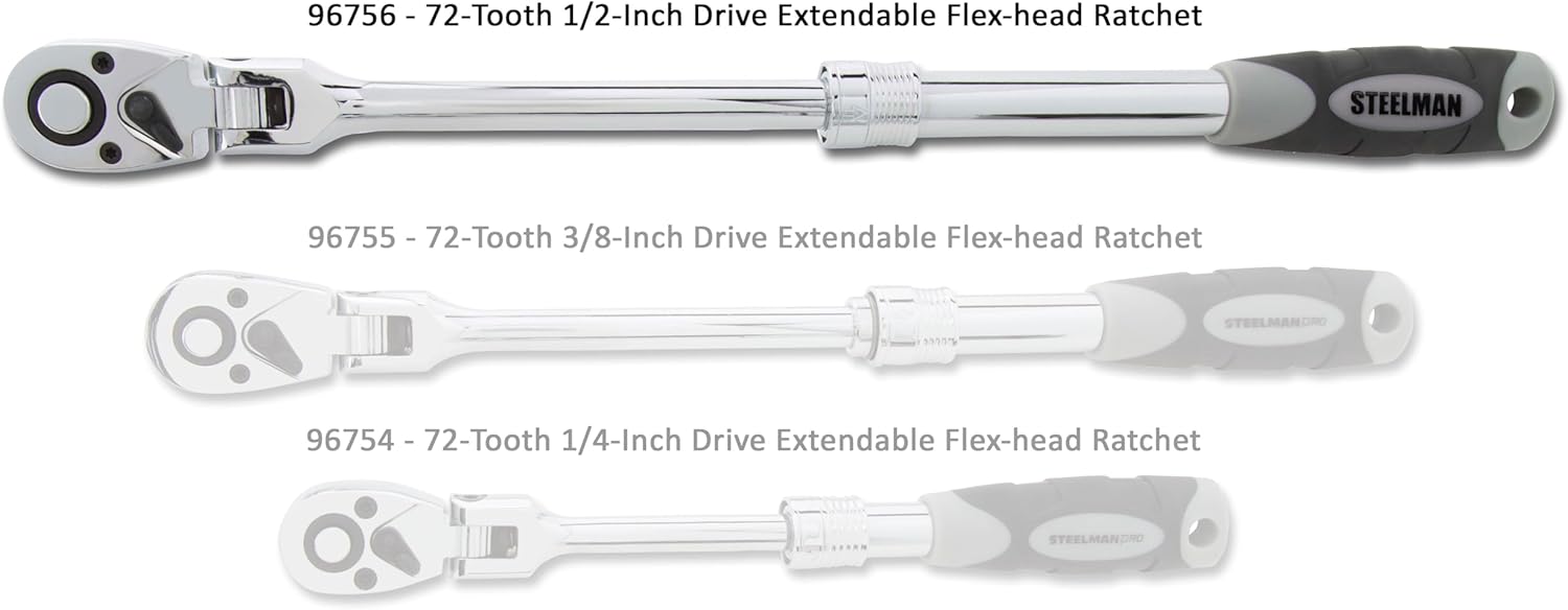 Steelman Pro 1/2-Inch Drive 72-Tooth Flex-Head Ratchet – 13.5-19″ Extendable Chrome-Vanadium Steel Ratchet with Quick Release & Comfort Grip for Auto Mechanics